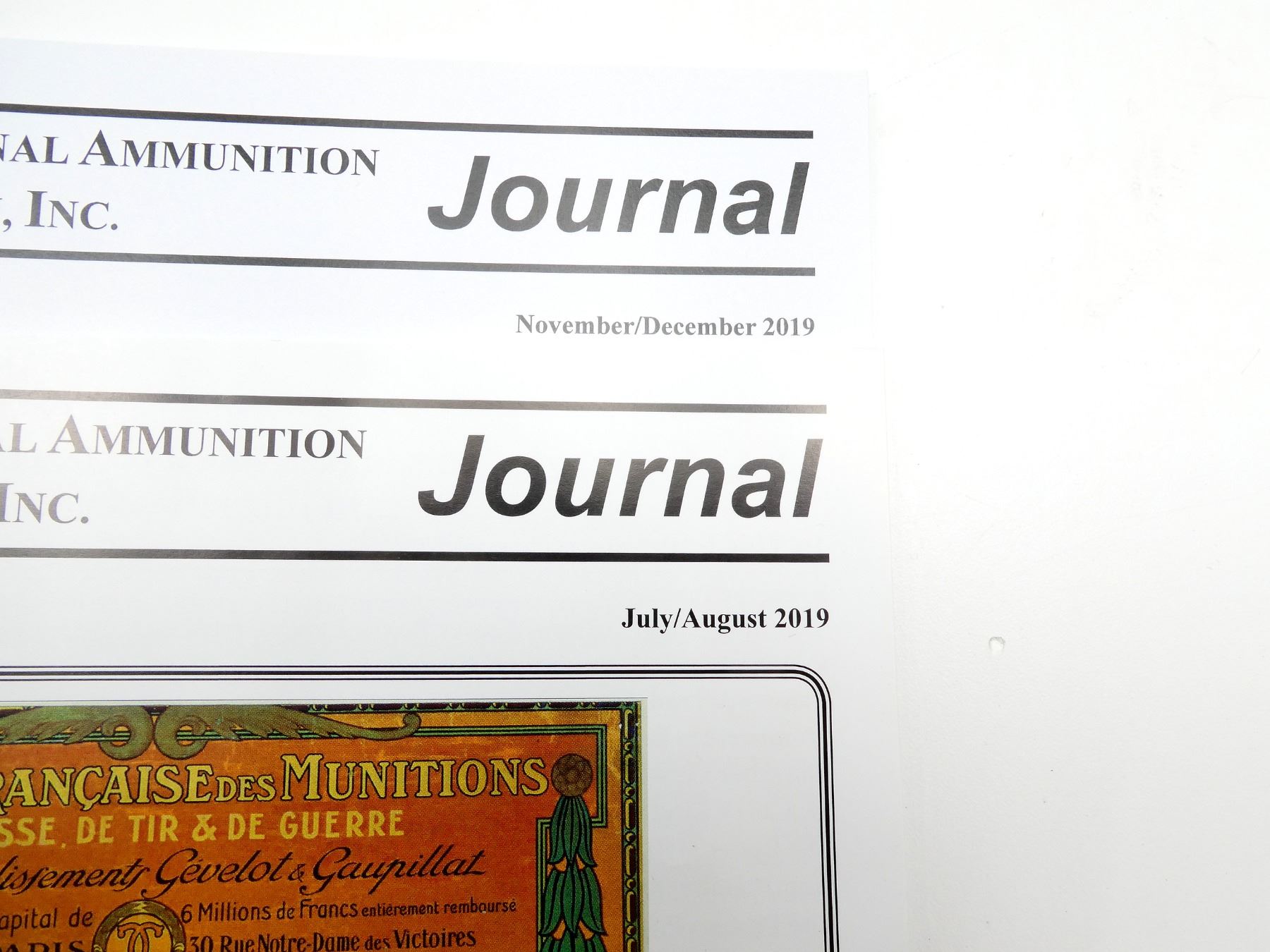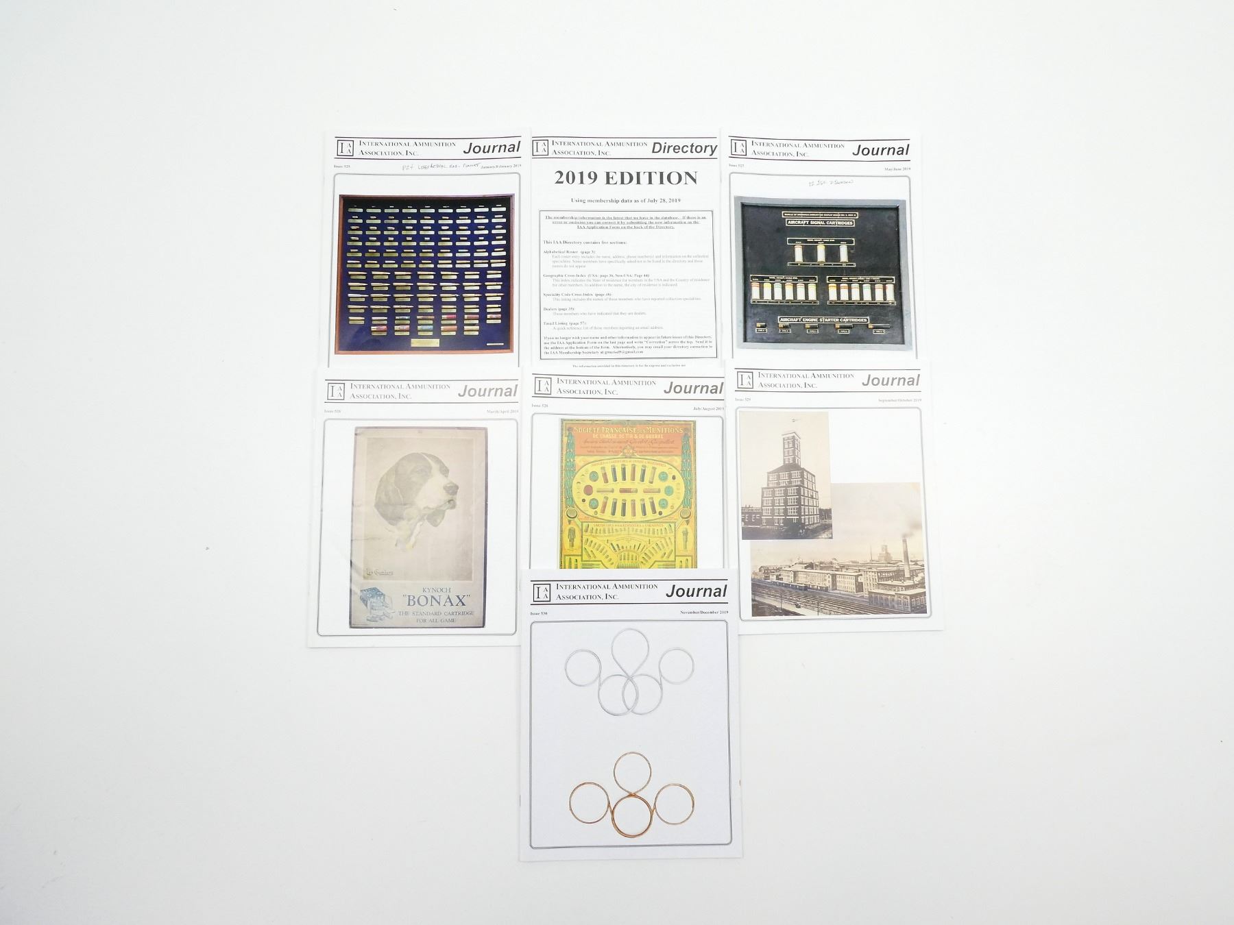 SOFT COVERS, LOT INCLUDES; (6) "INTERNATIONAL AMMUNITION ASSOCIATION INC." JOURNALS FROM JANUARY 2019 TO DECEMBER 2019 & (1) "INTERNATIONAL AMMUNITION ASSOCIATION INC." DIRECTORY, 2019 EDITION, SERIES NOT COMPLETE / SOME ISSUES MISSING / MAY CONTAIN DUPLICATES. SEE PHOTOS.