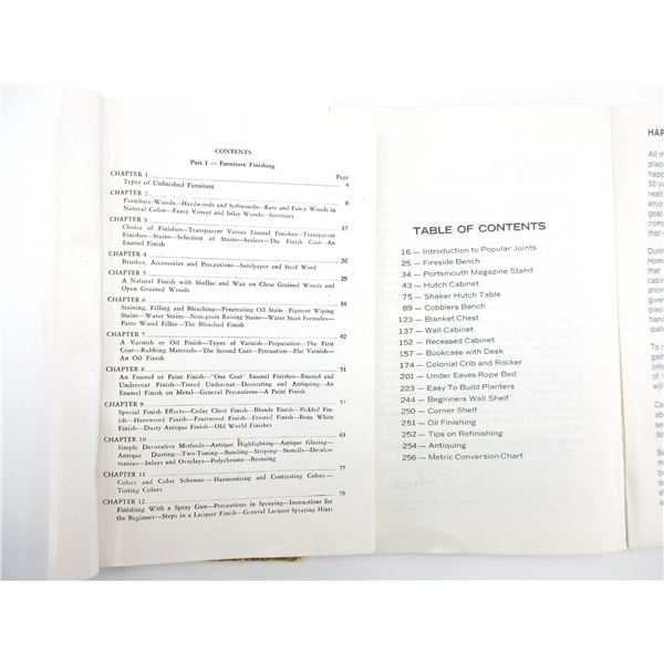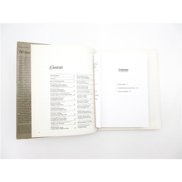 LOT INCLUDES; (1) "HOW-TO-DO-IT PRACTICAL FURNITURE AND WOOD FINISHING" BOOK BY ALBERT B. PATTON, SOFT COVER, COPYRIGHT 1956, (1) "HOW TO BUILD COLONIAL FURNITURE" BOOK BY DONALD R. BRANN, SOFT COVER, ISBN: 0-87733-761-6, (1) "BOW HUNTING NOTES" BOOK BY THE ONTARIO BOWHUNTERS ASSOCIATION, SOFT COVER, COPYRIGHT 1980, (1) "HERITAGE OF CANADA, OUR STORIED PAST-AND WHERE TO FIND IT" BOOK BY READER'S DIGEST, HARD COVER WITH DUST COVER, ISBN: 0-88850-065-3, (1) "A TREASURY OF STEPHEN LEACOCK" BOOK BY STEPHEN LEACOCK, SOFT COVER, ISBN: 1-55267-217-4 & (1) "REDWOOD THE STORY BEHIND THE SCENERY" BOOK BY RICHARD A. RASP, SOFT COVER, ISBN: 0-88714-022-X. SEE PHOTOS.
