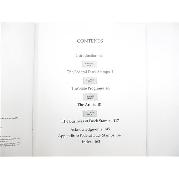 HARD COVERS WITH DUST COVERS, LOT INCLUDES; (1) "DUCK STAMPS AND PRINTS, THE COMPLETE FEDERAL AND STATE EDITIONS" BOOK PUBLISHED BY PARK LANE, INTRODUCTION BY JOE MCCADDIN, ISBN: 0-517-66573-5 & (1) "DUCK STAMPS ART IN THE SERVICE OF CONVERSATION" BOOK BY SCOTT WEIDENSAUL, ISBN: 0-8317-6381-7, SEE PHOTOS.
