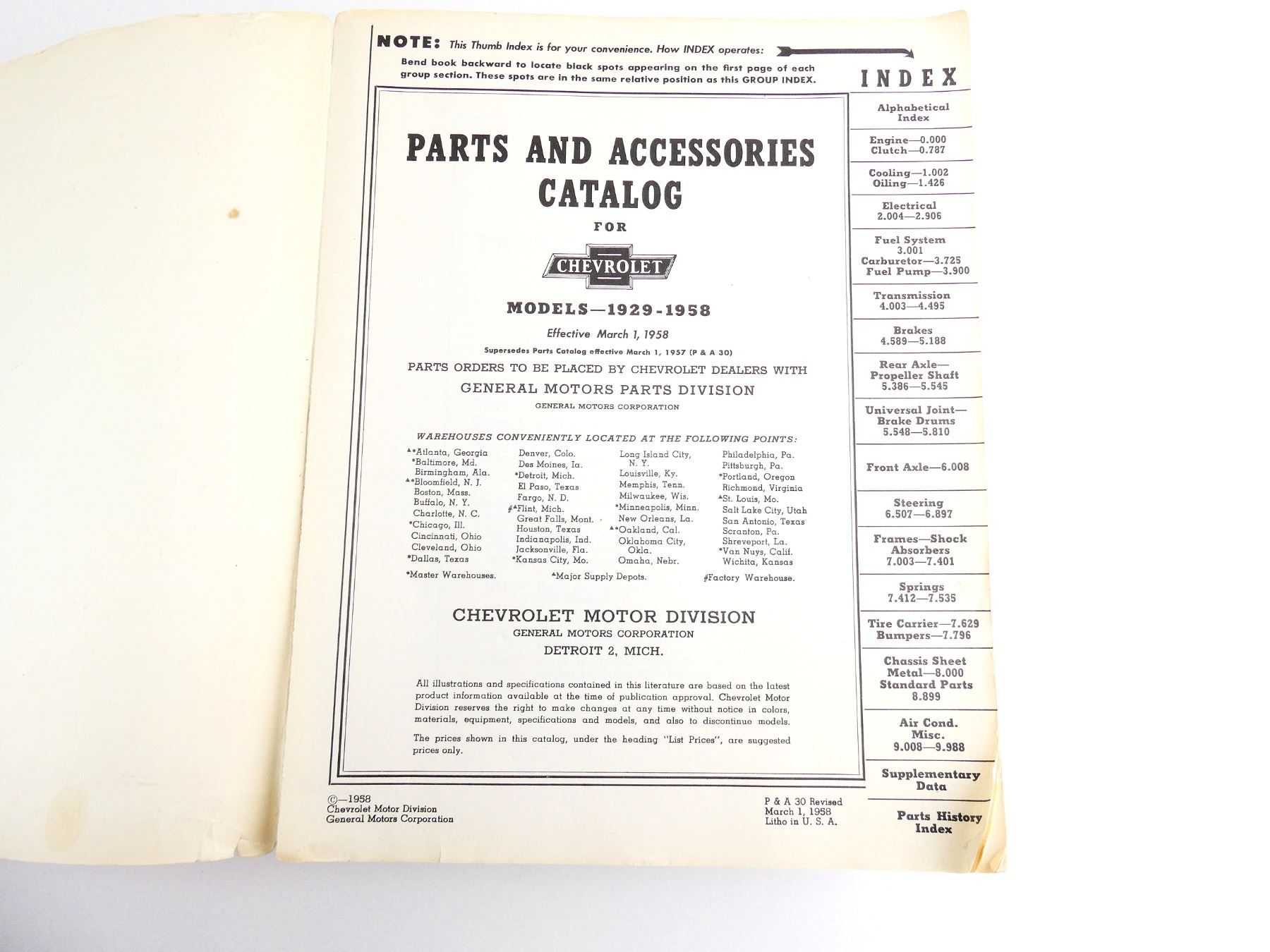 "CHEVROLET PARTS AND ACCESSORIES CATALOG 1929-1958" CATALOGUE