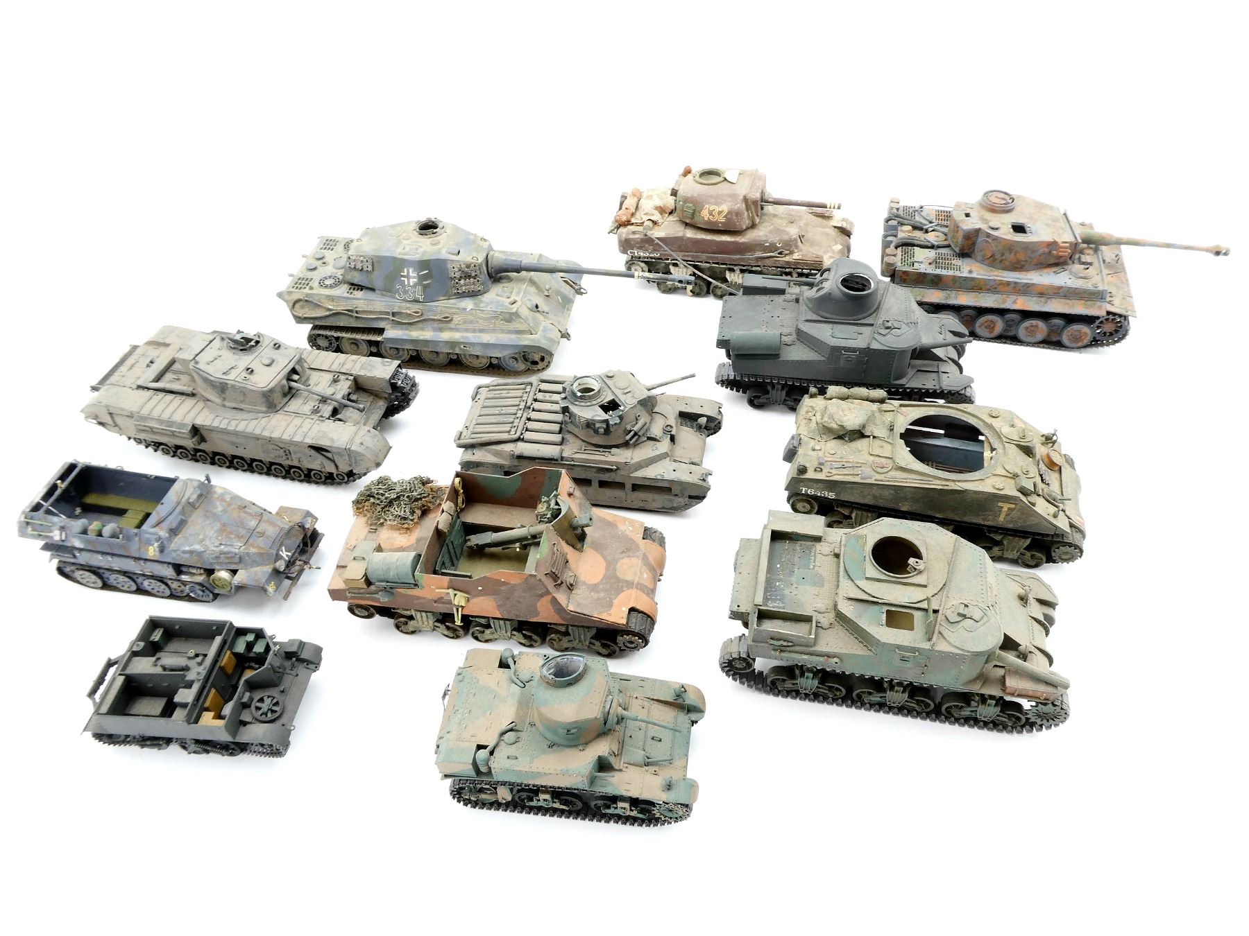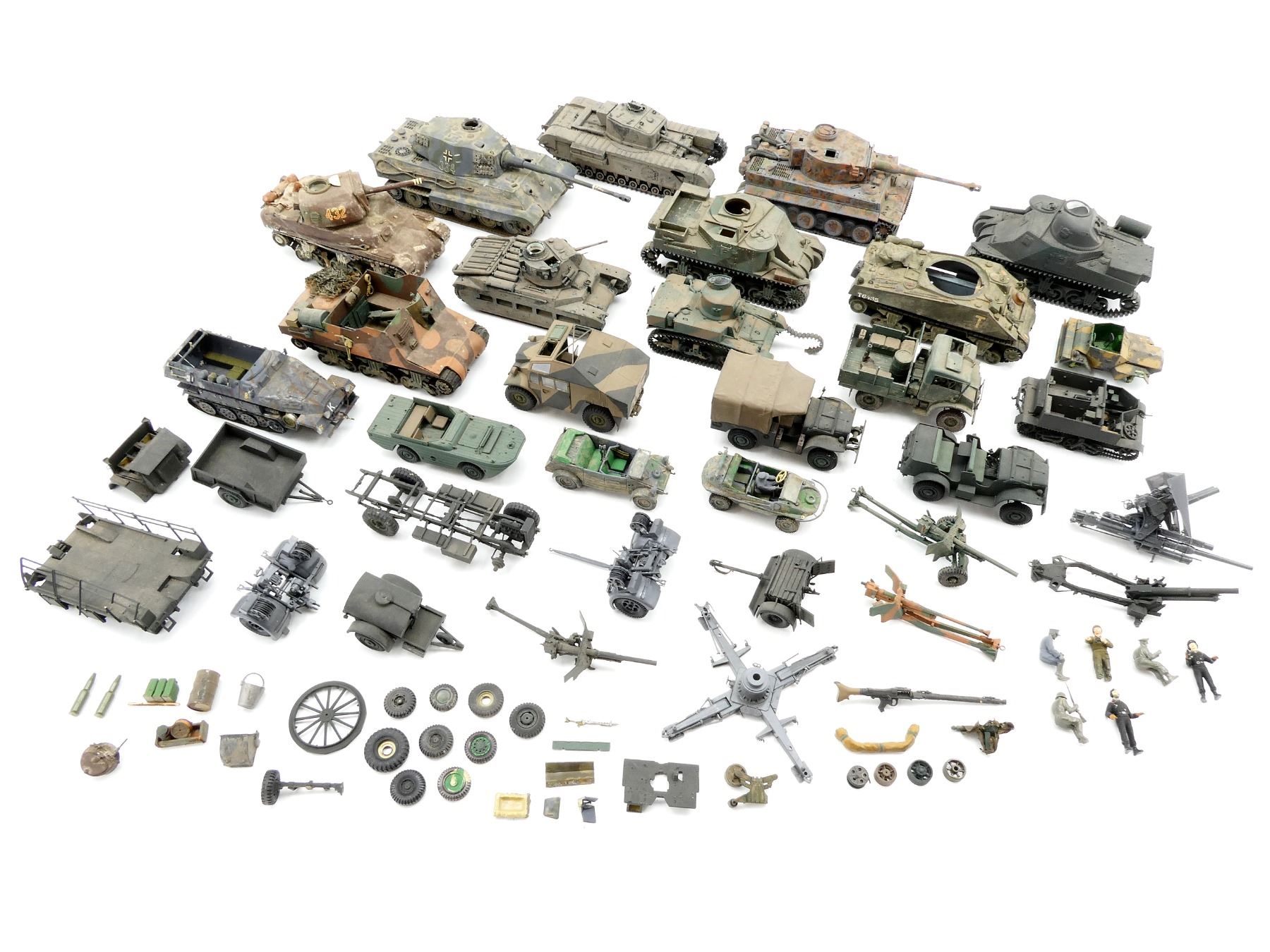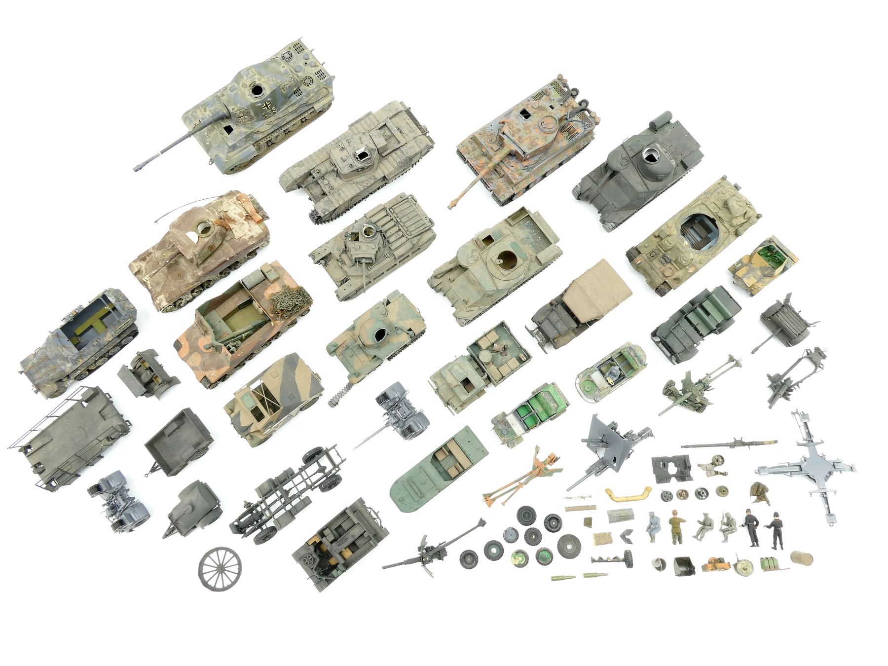 LOT INCLUDES; (22) MILITARY VEHICLE MODELS, SOME PIECES BROKEN, MAY BE REASSEMBLED, MAY NOT BE COMPLETE / PICES MAY BE MISSING. SEE PHOTOS.