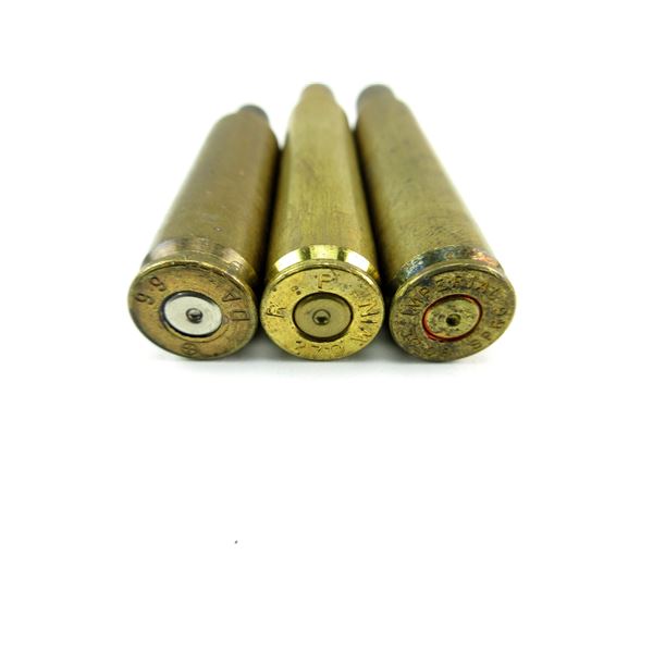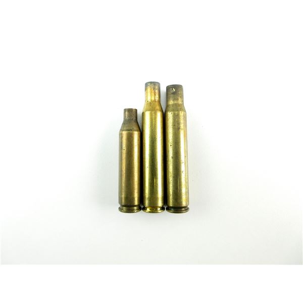 LOT INCLUDES; APPROX. 4.7 LBS NON-PRIMED BRASS CASES, VARIOUS CALIBERS INCLUDING; .270 WIN, .30-06 SPRG, ETC.