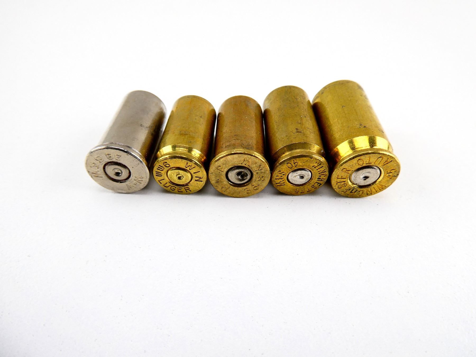 LOT INCLUDES; APPROX. 6 LBS NON-PRIMED CASES, VARIOUS CALIBERS INCLUDING; 9MM LUGER, .38 S&W, .40 S&W, .45 AUTO, ETC.