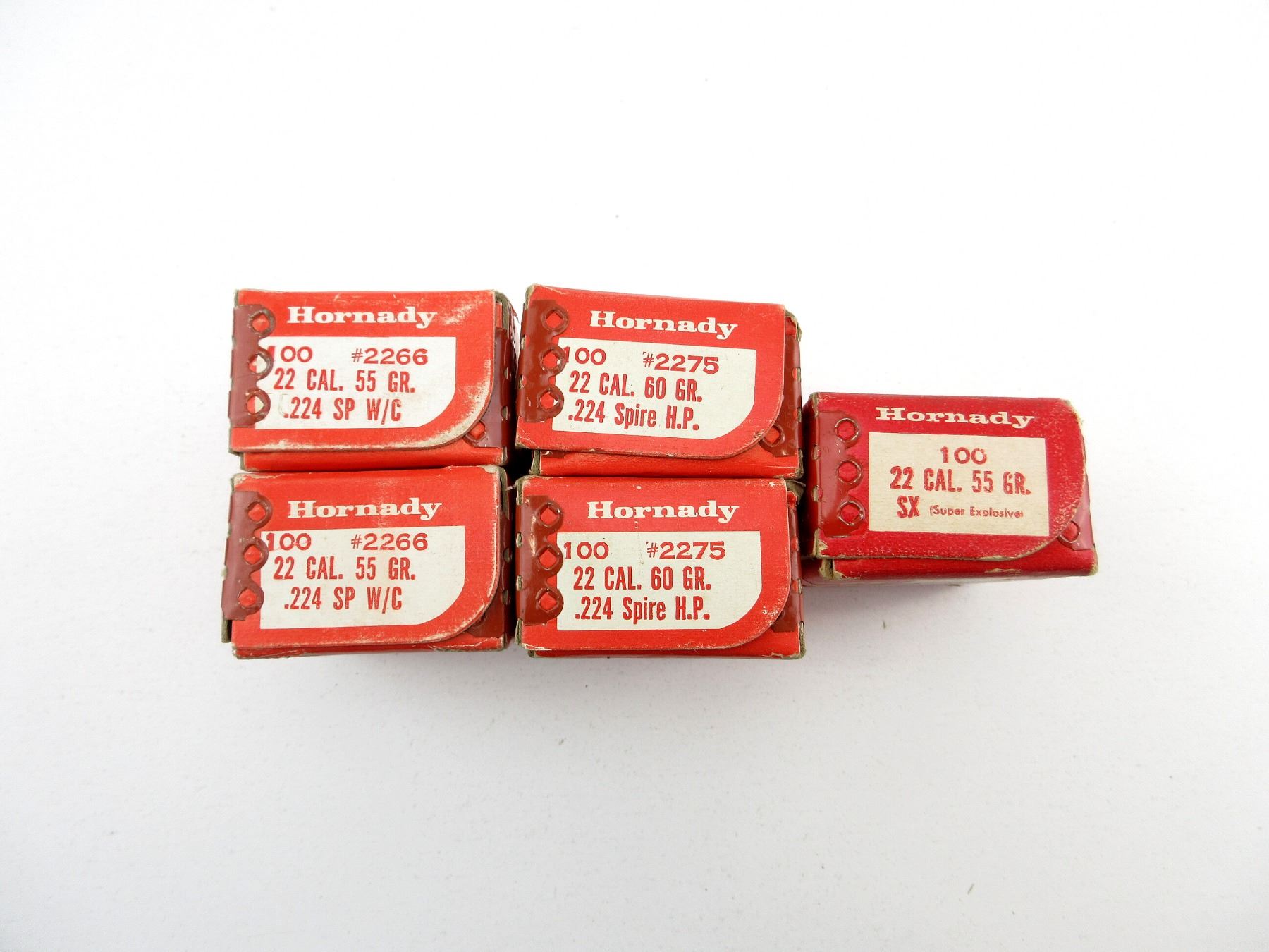 LOT INCLUDES; APPROX. 3 LBS BULLETS, APPROX. DIA .224", 55 GRNS (STATED ON BOX NOT CONFIRMED) SX, 55 GRNS (STATED ON BOXES NOT CONFIRMED) SP W/C, & 60 GRNS (STATED ON BOXES NOT CONFIRMED) SPIRE HP, (3) UNOPENED.