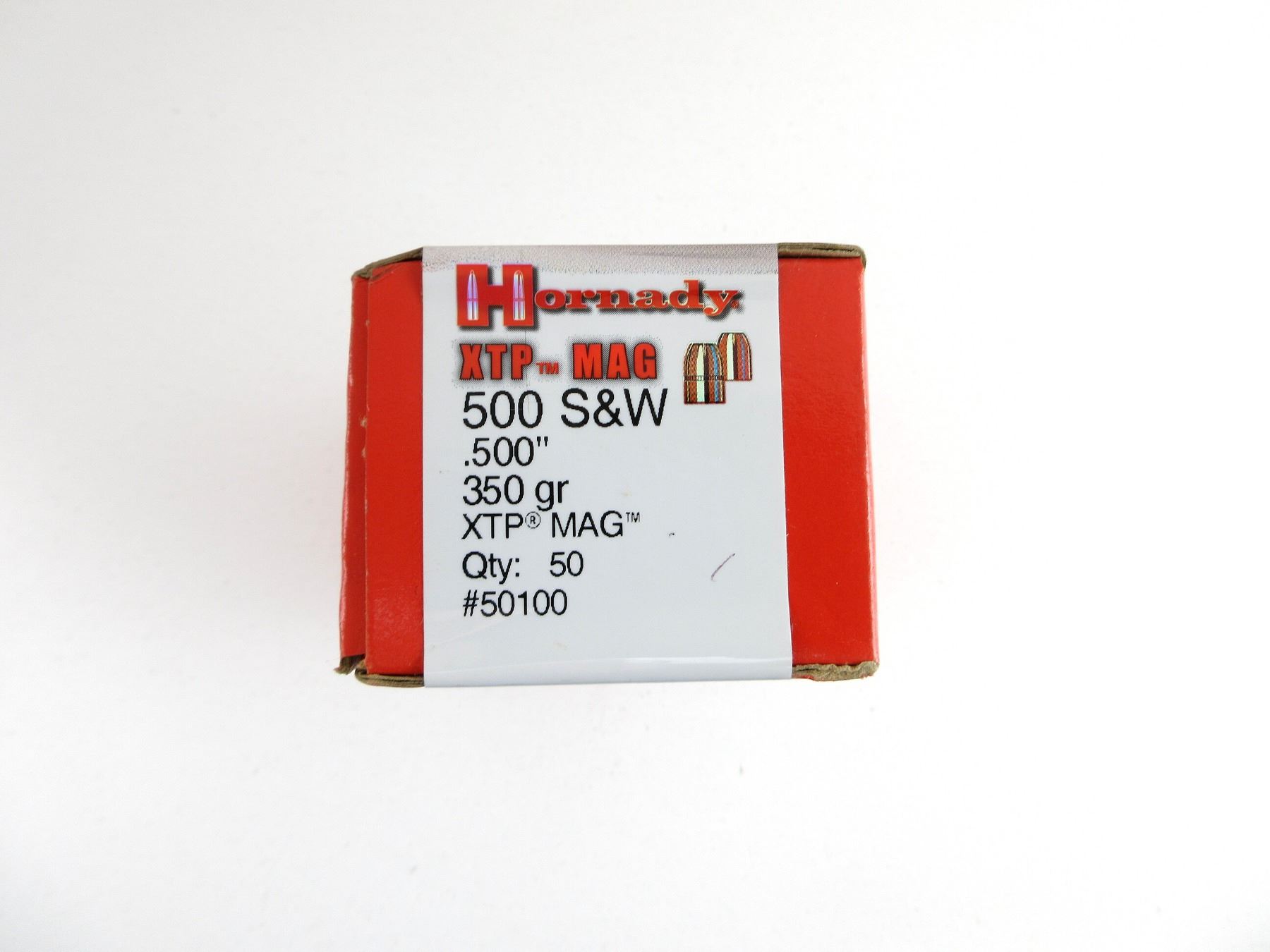 LOT INCLUDES; APPROX. (50) BULLETS, APPROX. DIA .500", 350 GRNS (STATED ON BOX NOT CONFIRMED) XTP, UNOPENED.