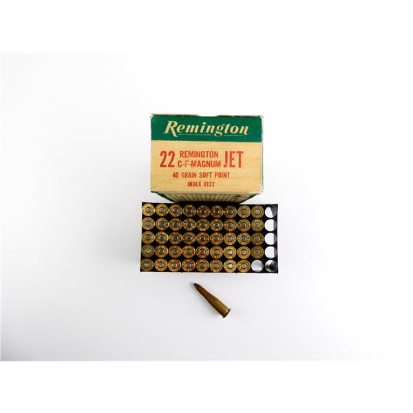 COLLECTIBLE REMINGTON .22 REM JET CF MAGNUM AMMO AND NON-PRIMED BRASS CASES LOT