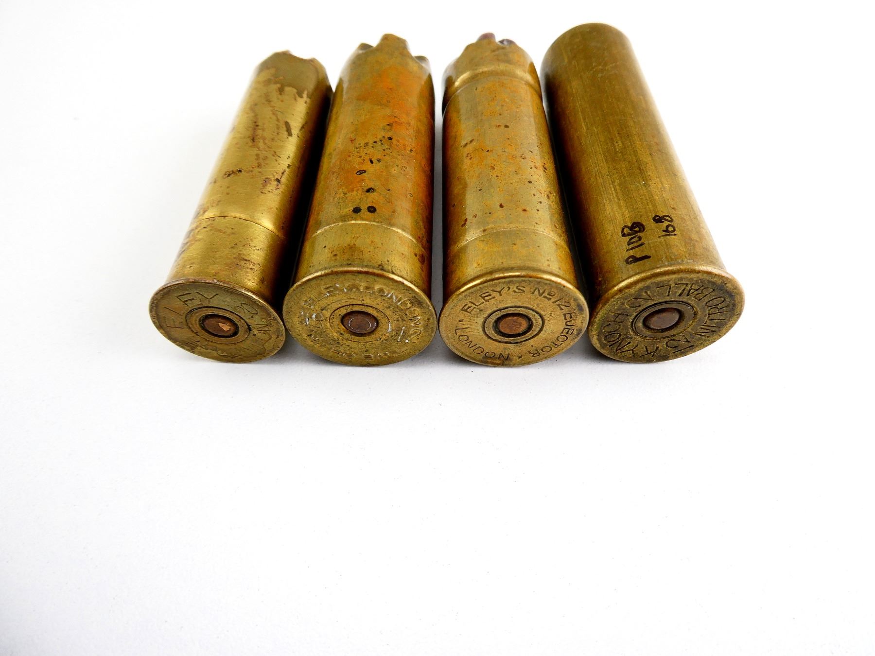 LOT INCLUDES; APPROX. (4) RNDS, MARKED KYNOCH 12 NITRO BALL, ELEY 12 NITRO BALL, ELEY'S NO 12 EJECTOR & ELEY NO 20, SEE PHOTOS.