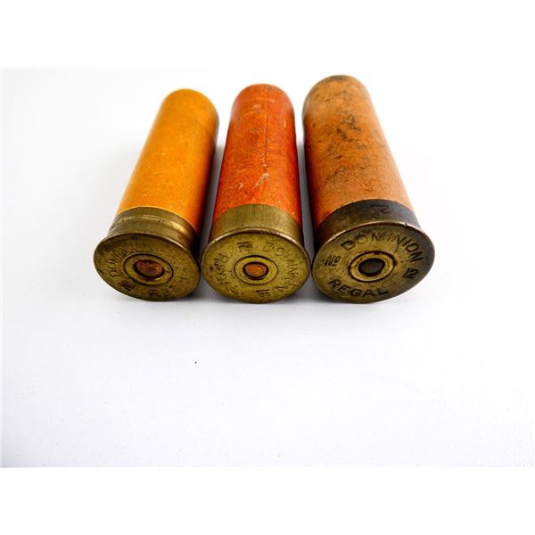COLLECTIBLE ASSORTED DOMINION REGAL 12 GAUGE / 16 GAUGE AND 20 GAUGE 2 3/4" SHOT SHELL AMMO LOT