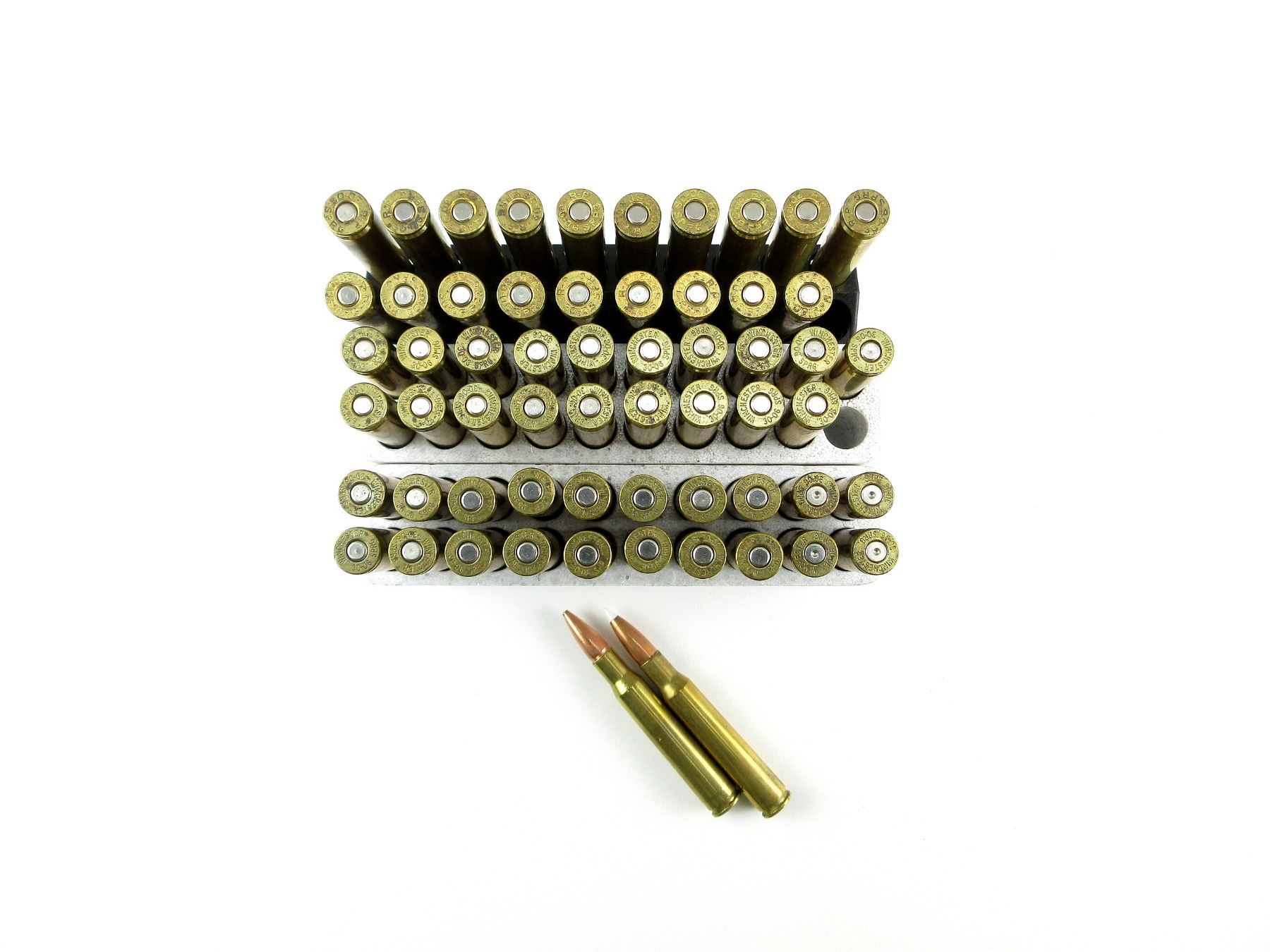 LOT INCLUDES; APPROX. (56) RNDS, (4) NON-PRIMED BRASS CASES.