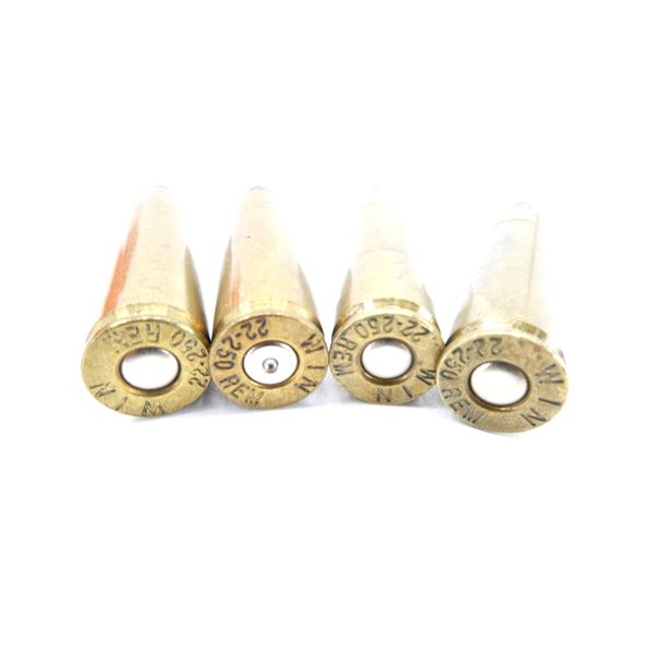 RELOADED ASSORTED .22-250 REM AMMO AND NON-PRIMED BRASS CASES LOT