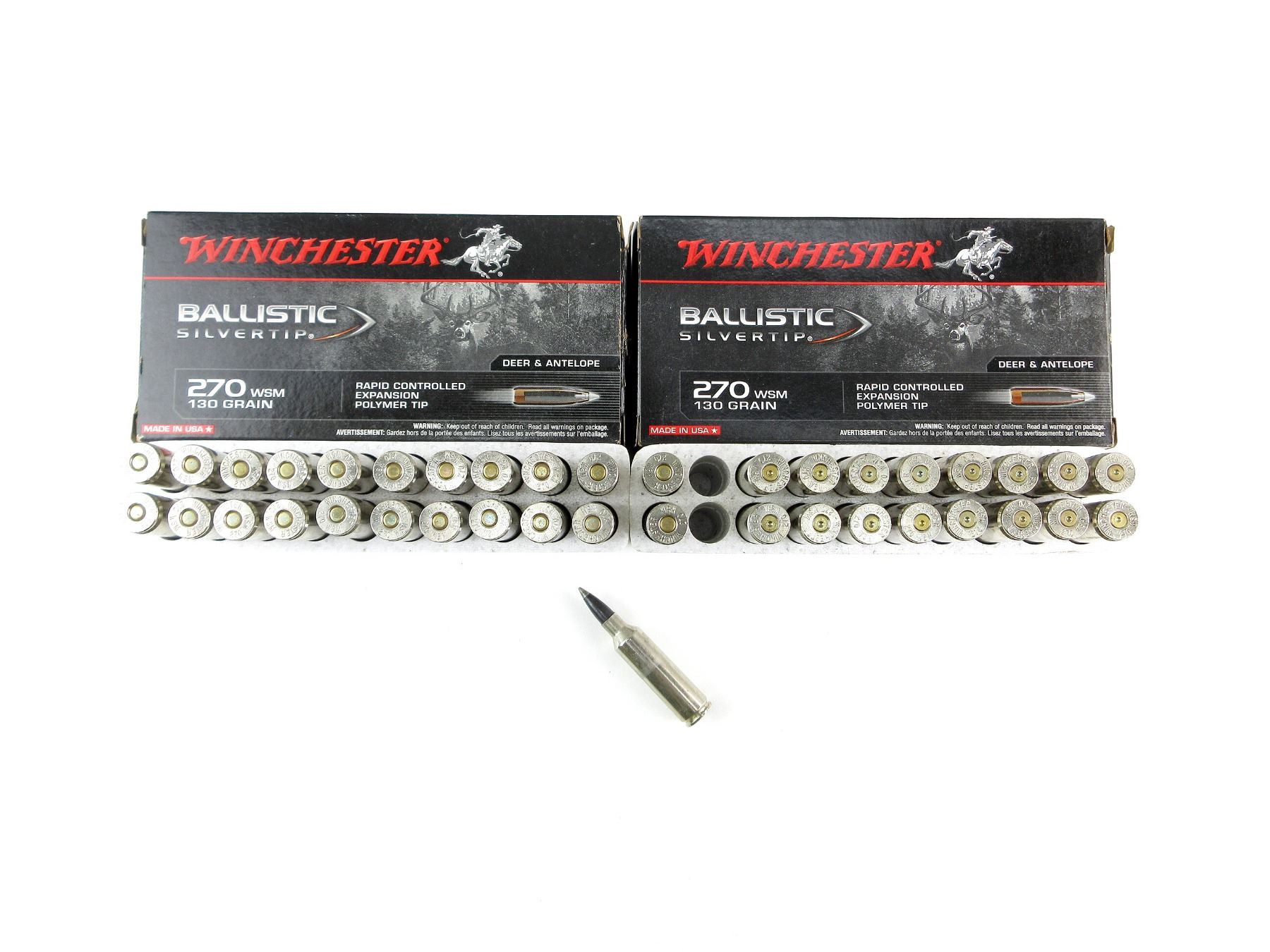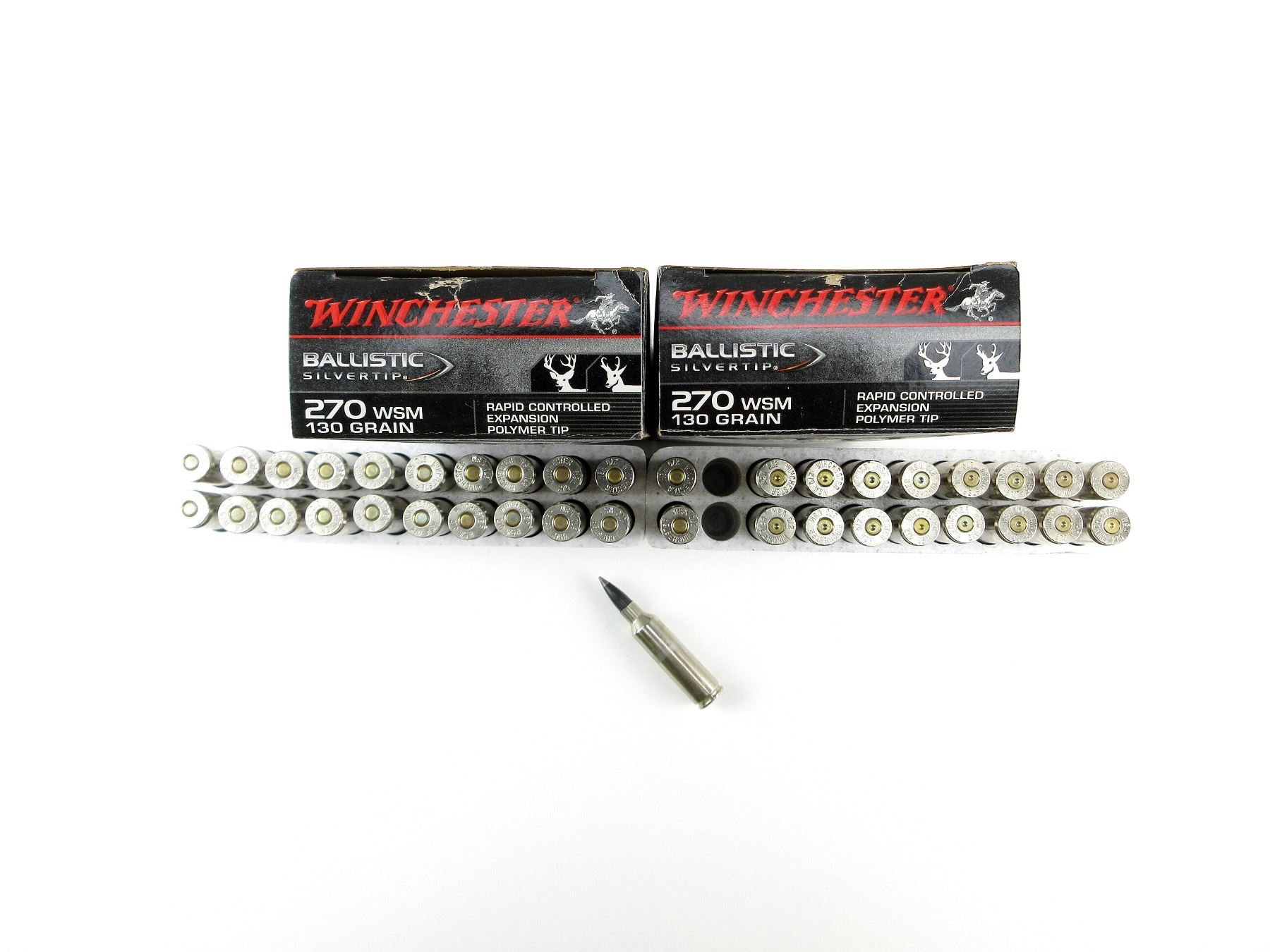 Lot 11028 WINCHESTER BALLISTIC SILVERTIP .270 WSM AMMO AND NON-PRIMED NICKEL CASES LOT
