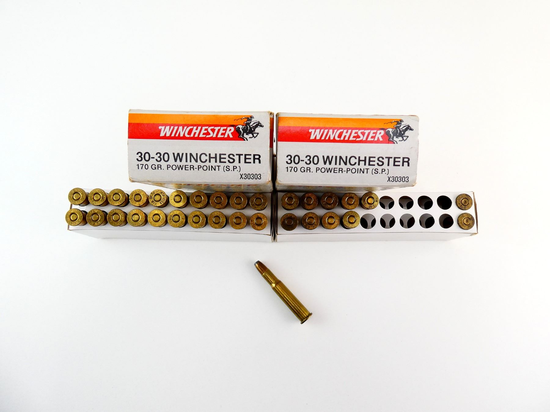 Lot 11573 WINCHESTER .30-30 WIN AMMO AND NON-PRIMED BRASS CASES LOT