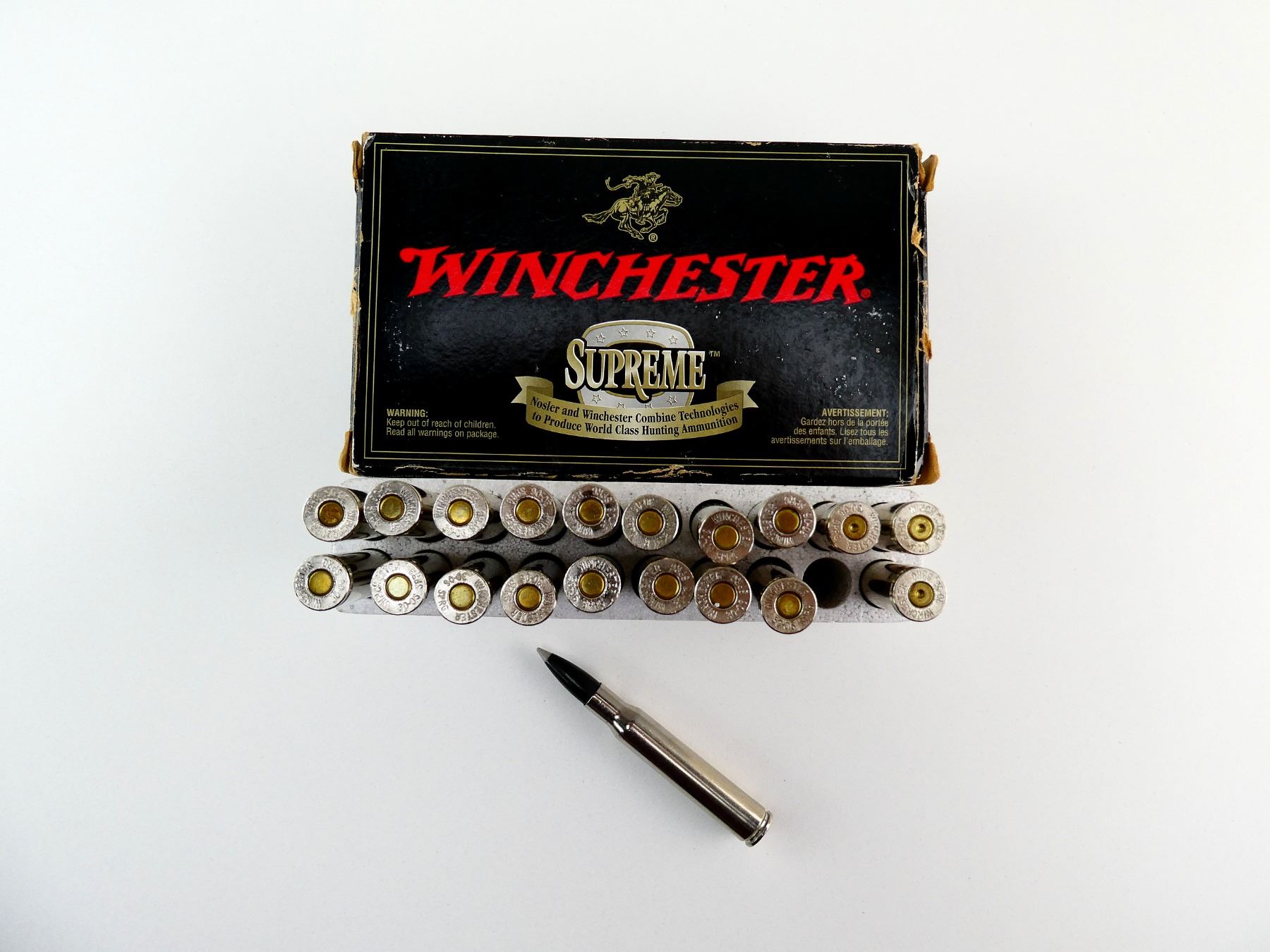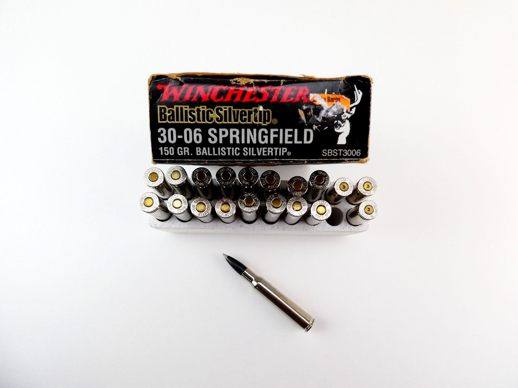 LOT INCLUDES; APPROX. (17) RNDS, 150 GRNS (STATED ON BOX NOT CONFIRMED), BALLISTIC SILVER TIP, (3) NON-PRIMED NICKEL CASES.