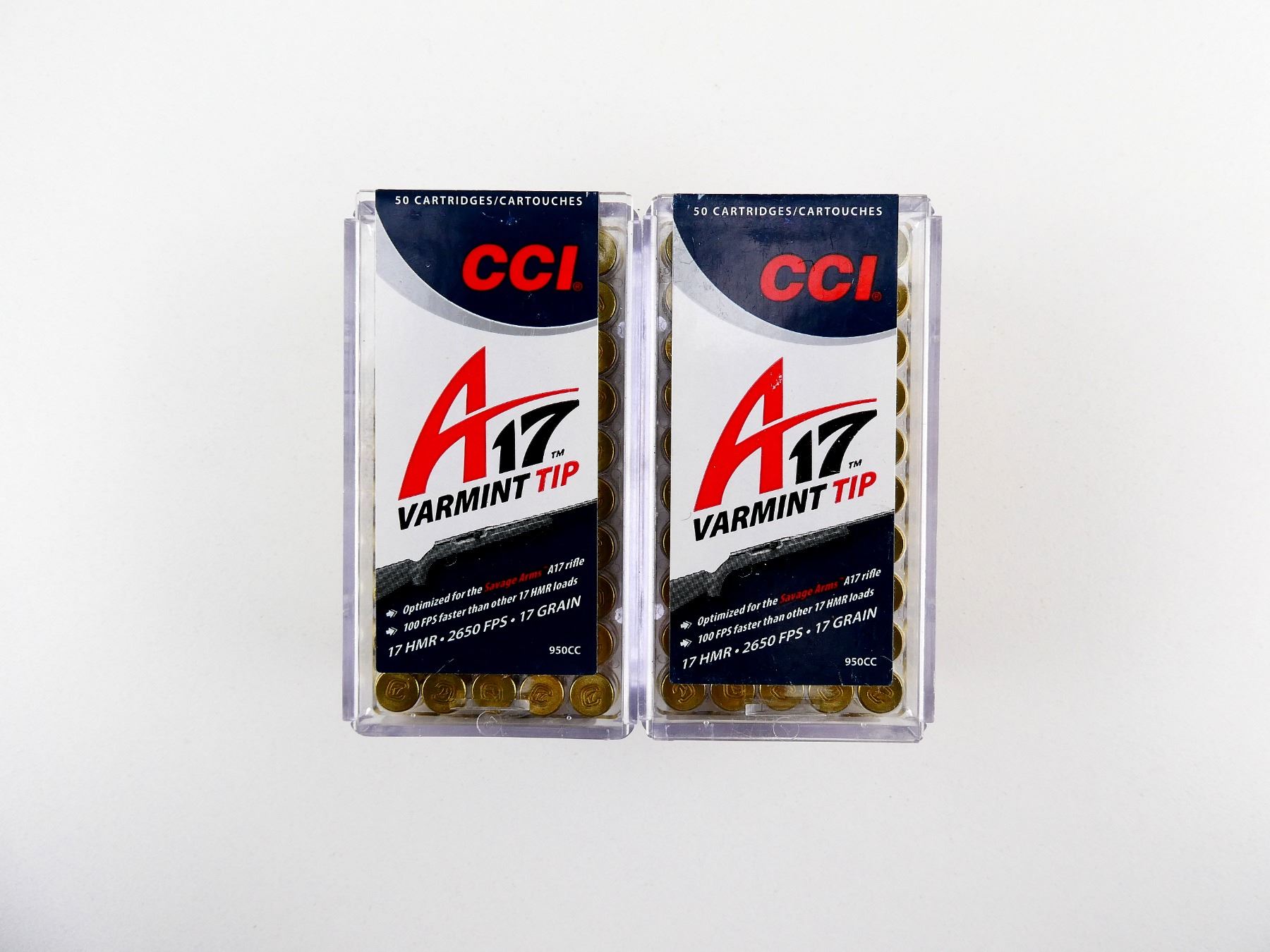LOT INCLUDES; APPROX. (100) RNDS, 17 GRNS (STATED ON BOXES NOT CONFIRMED), VARMINT TIP, UNOPENED.