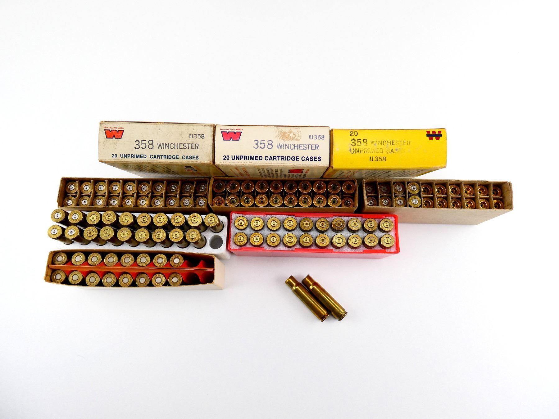 Lot 13011 PRIMED / NEW NON-PRIMED AND USED NON-PRIMED .358 WIN BRASS CASES LOT