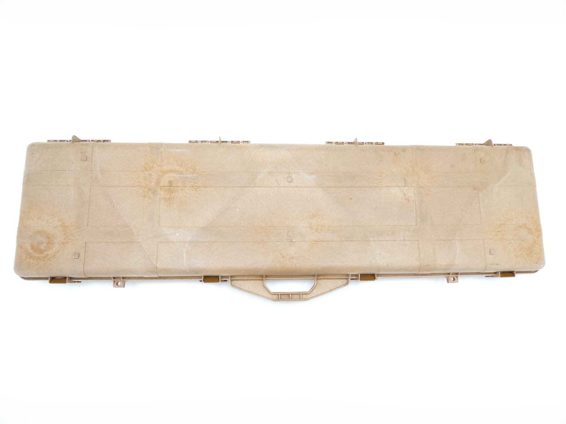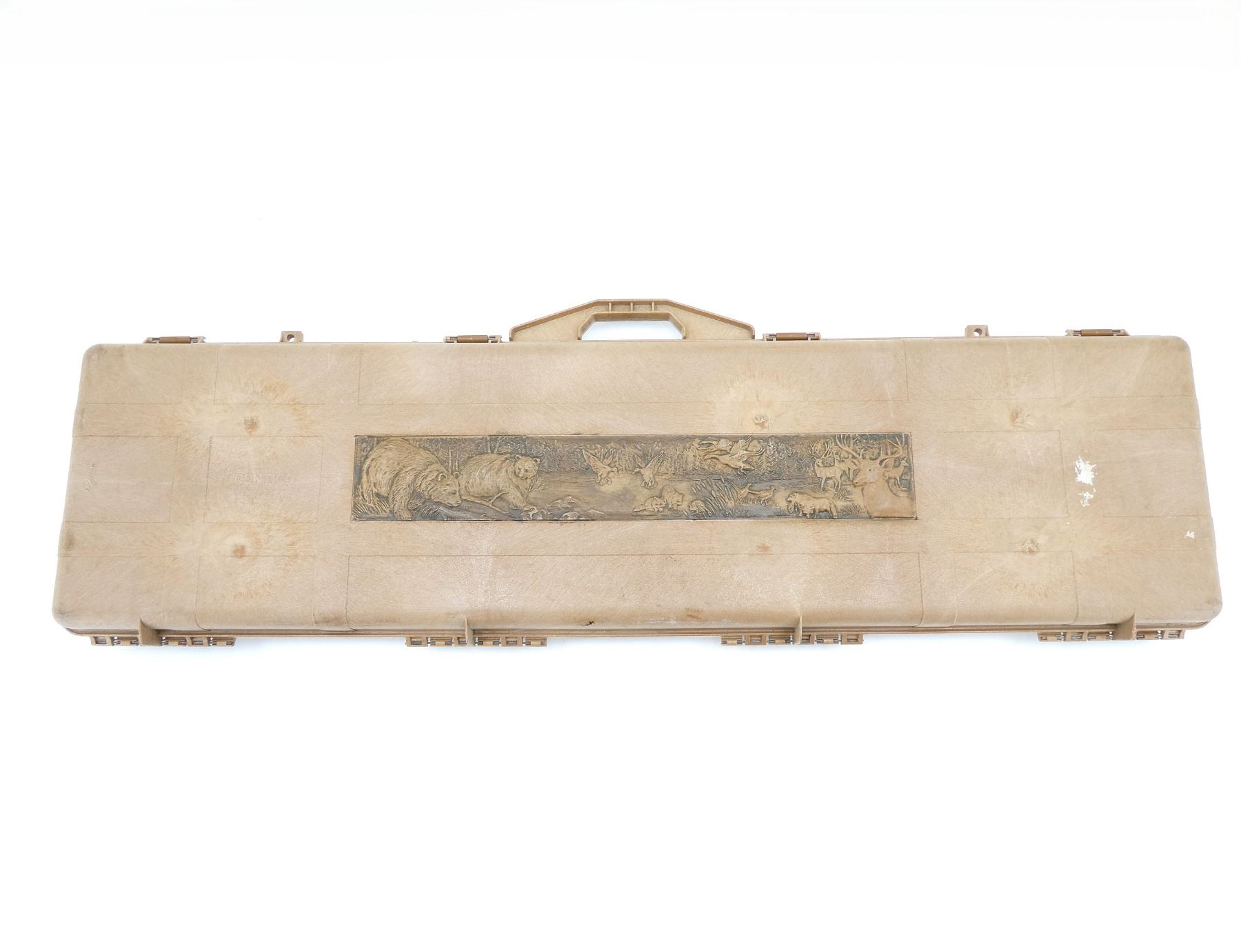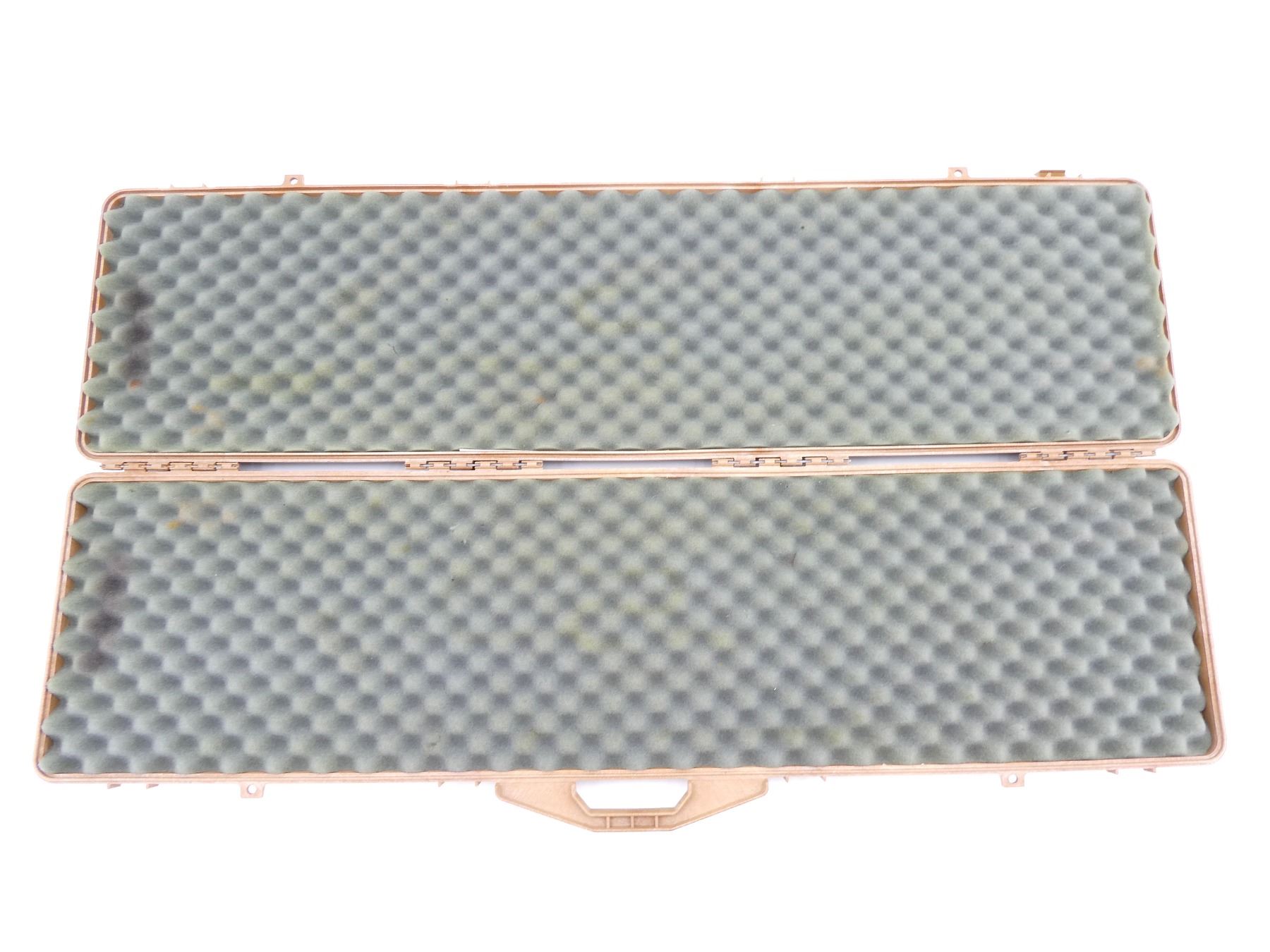 LOT INCLUDES; (1) TAN HARD PADDED GUN CASE, CARRY HANDLE, (4) LATCHES, APPROX. OAL 51", SHOWS WEAR AND TEAR FROM USAGE, SEE PHOTOS.