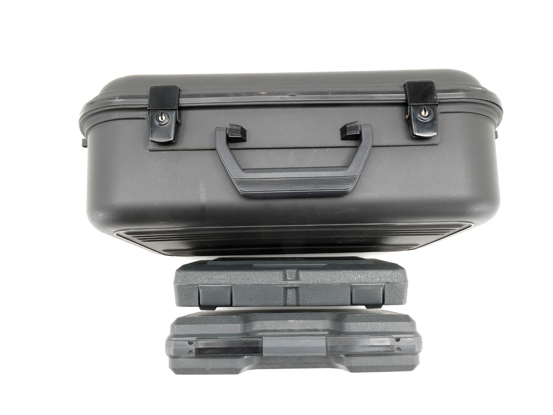 LOT INCLUDES; (1) BLACK HARD PADDED HANDGUN CASE, CARRY HANDLE, (2) LOCKING LATCHES, NO KEYS, (2) GREY HARD NON-PADDED HANDGUN CASE, (1) WITH CARRY HANDLE, (2) LATCHES, APPROX. OAL 11"-17", SHOWS WEAR AND TEAR FROM USAGE, SEE PHOTOS.