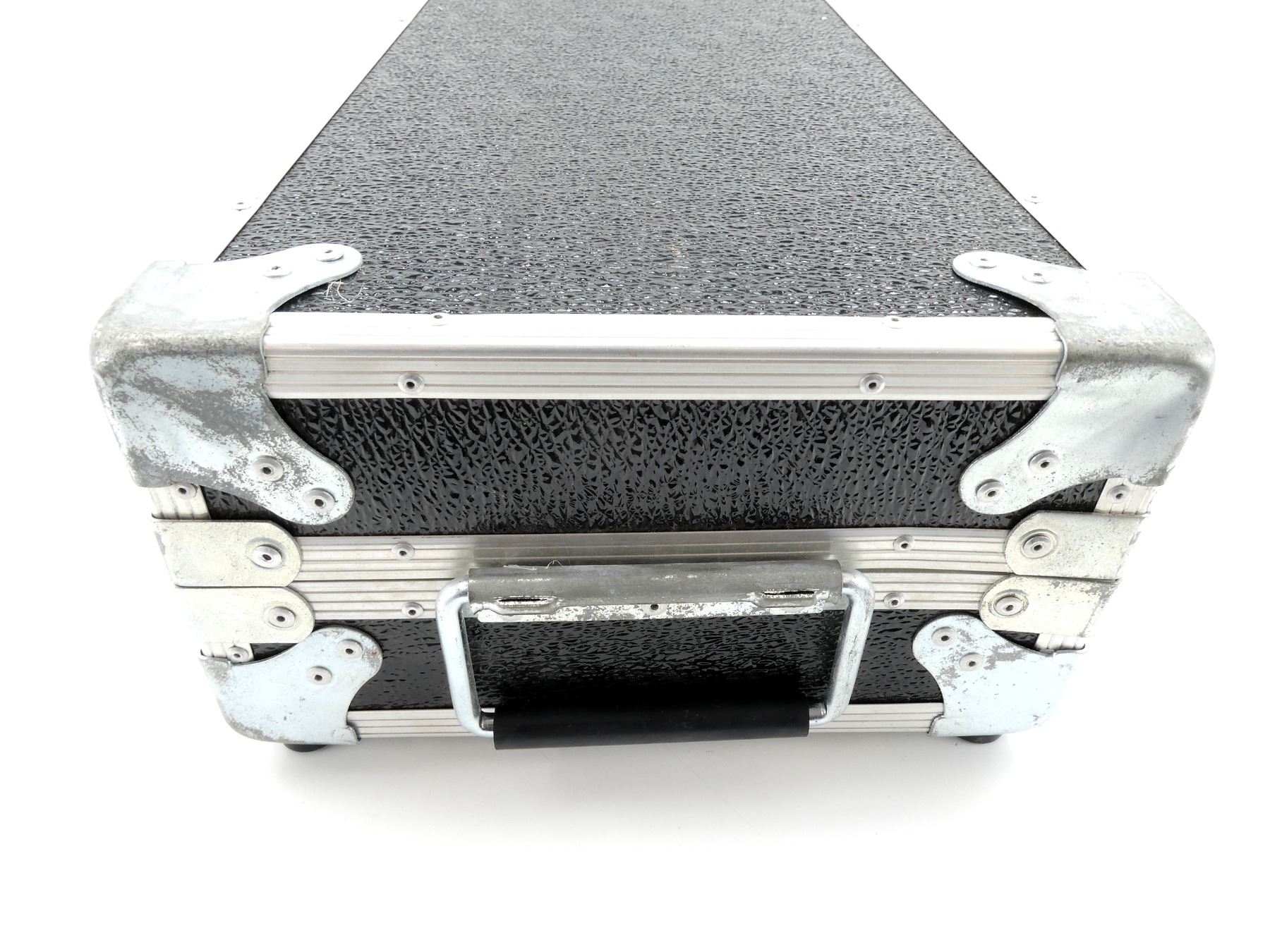 LOT INCLUDES; (1) BLACK HARD PADDED GUN CASE, CARRY HANDLE, DRAG HANDLE, MISSING WHEELS, (2) LOCKING LATCHES, NO KEYS, APPROX OAL 40", SHOWS WEAR AND TEAR FROM USAGE, SEE PHOTOS