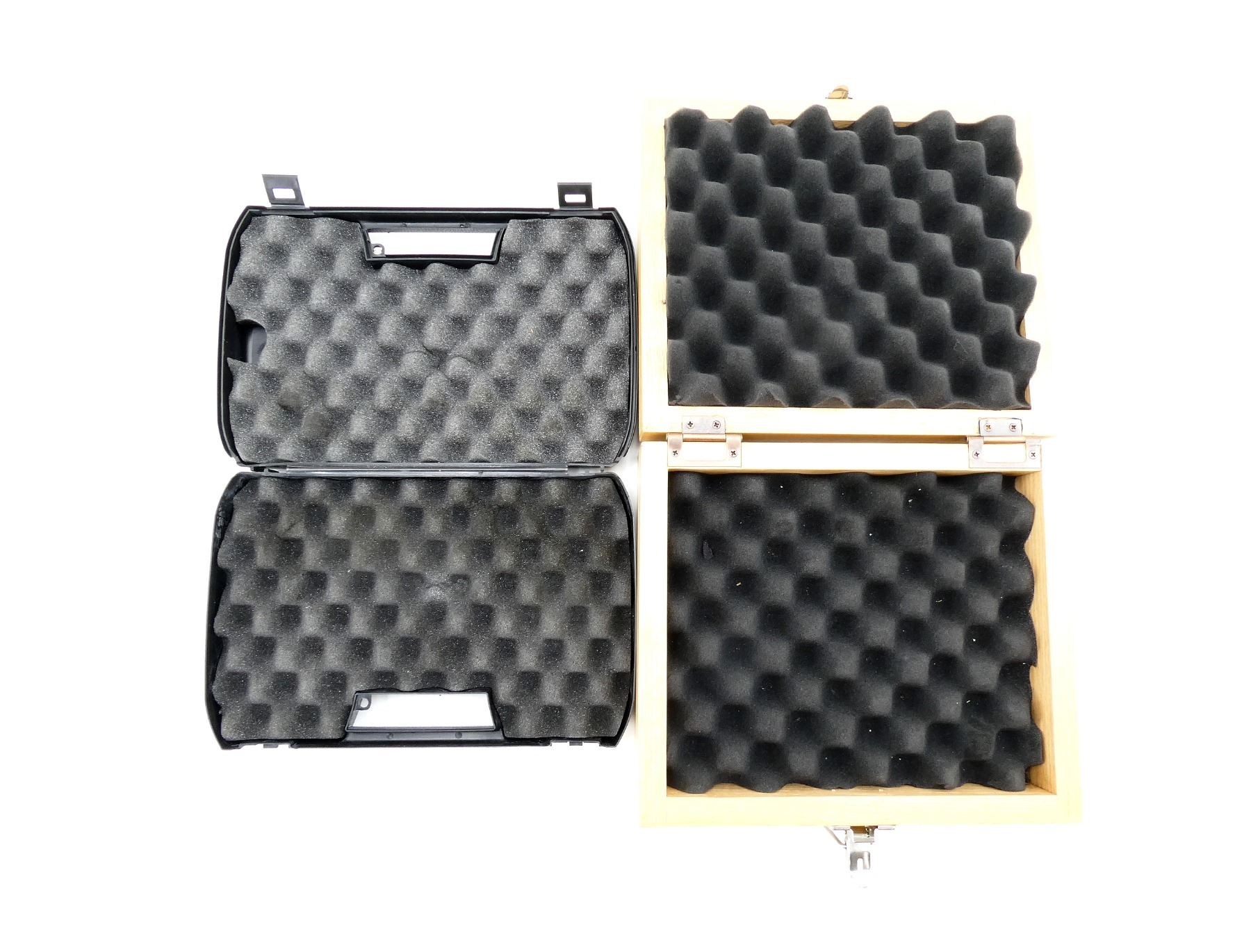 ASSORTED GSG-1911 HARD PADDED HANDGUN CASE AND WOODEN PADDED GUN BOX LOT