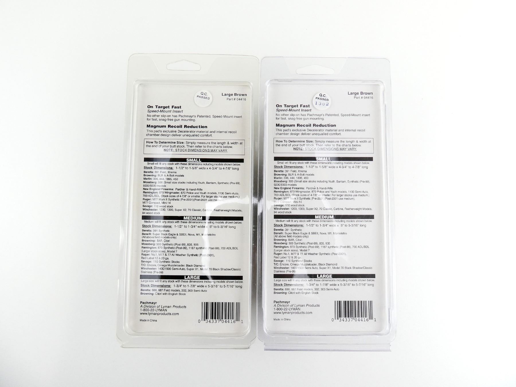 LOT INCLUDES; (2) SPEED-MOUNT INSERT RECOIL PADS, BROWN RUBBER, PART #: 04416, NOS IN ORIGINAL SEALED PACKAGING. MAY REQUIRE FITTING. SEE PHOTOS.