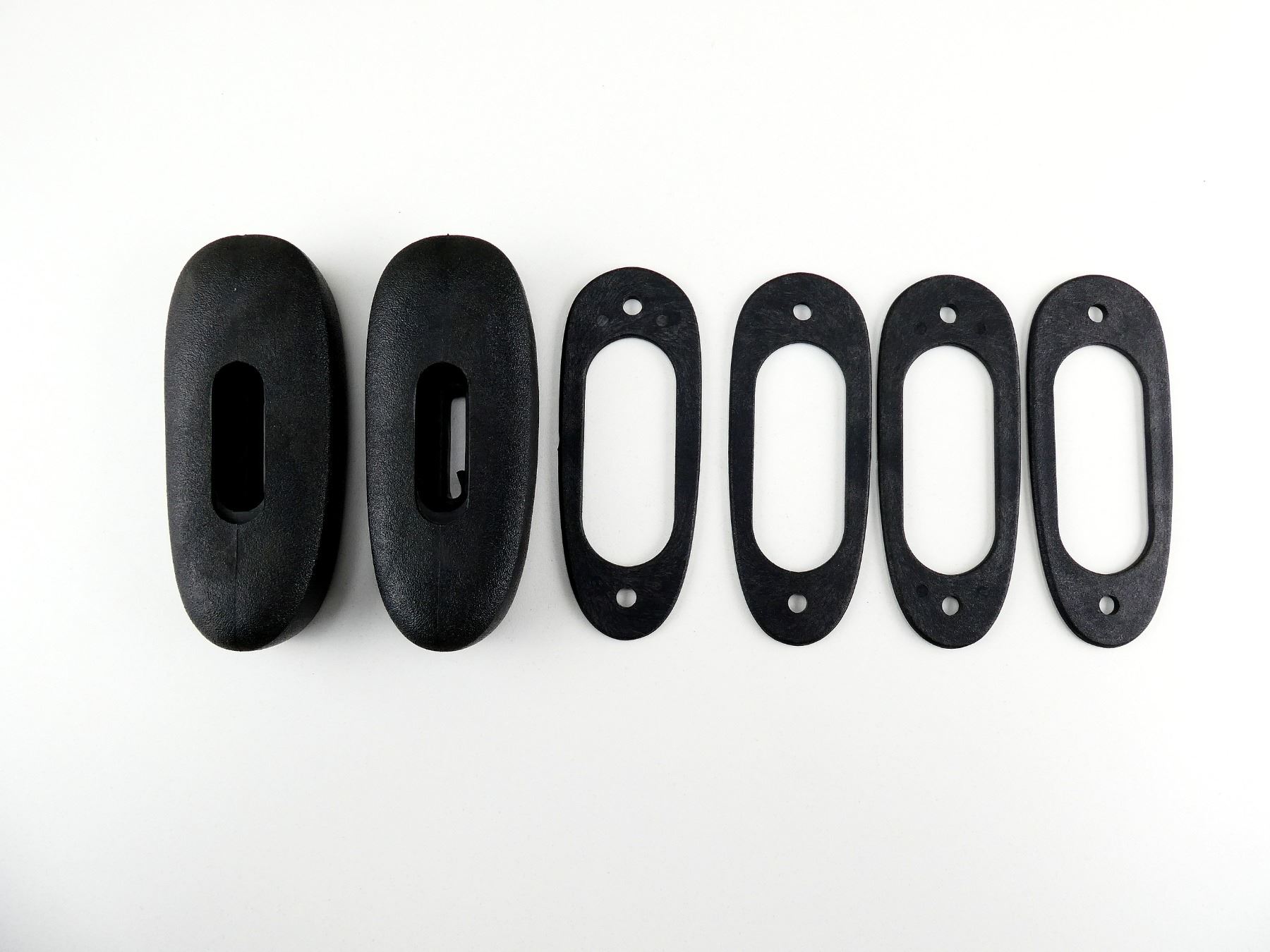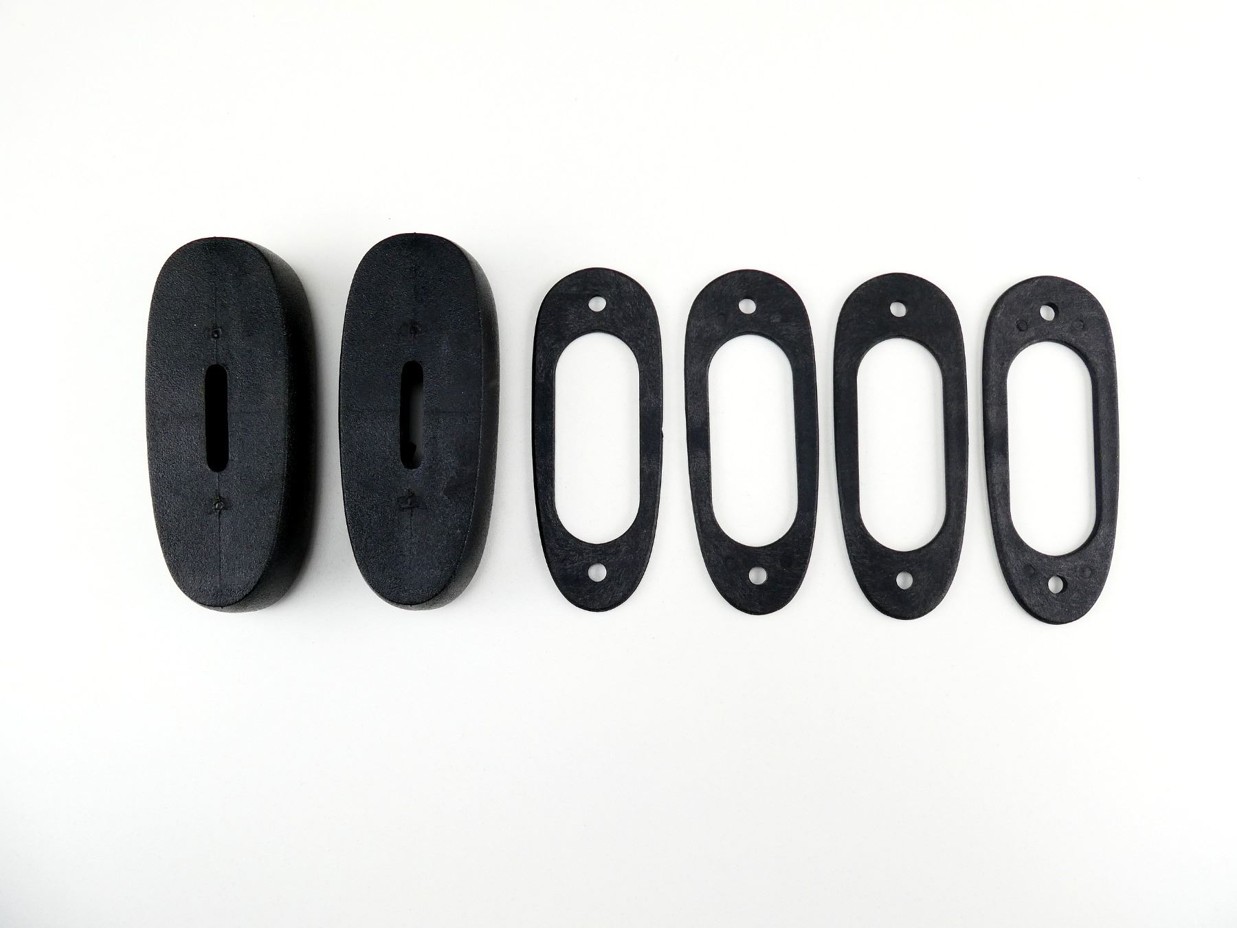 LOT INCLUDES; (2) UNKNOWN BLACK POLYMER BUTT PLATES, UNMARKED & (4) BLACK POLYMER SPACERS. MAY REQUIRE FITTING. SEE PHOTOS.