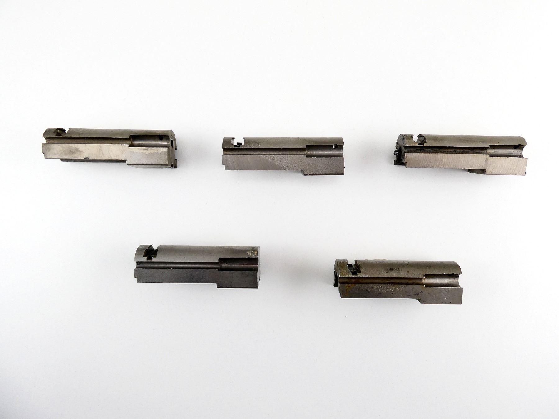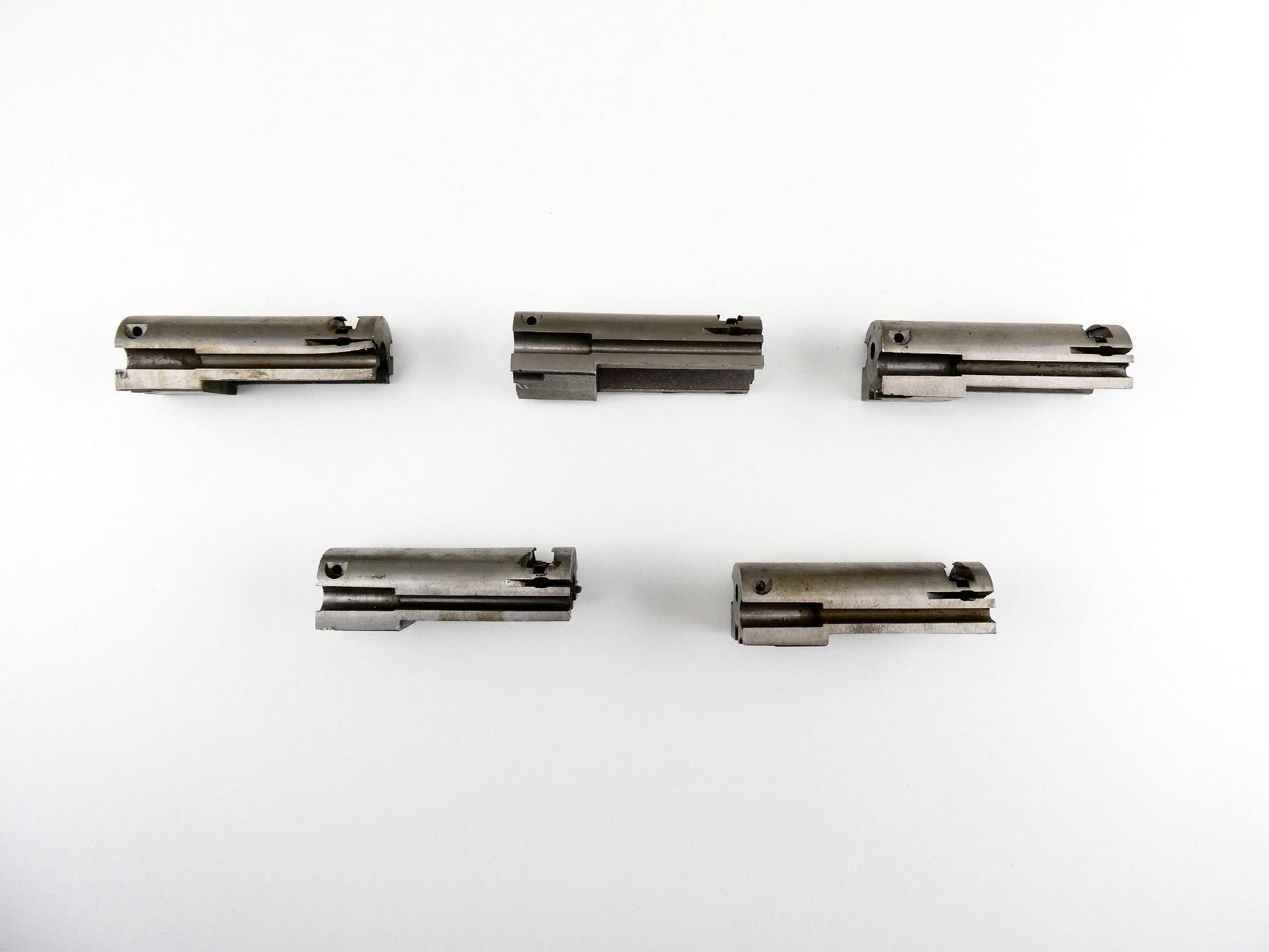 LOT INCLUDES; (5) BREECH BOLTS, STRIPPED, STEEL CONSTRUCTION, UNMARKED, FITS .17 HMR / .22 WMR RIFLES, OAL APPROX. 2.75". MAY REQUIRE FITTING. SEE PHOTOS.