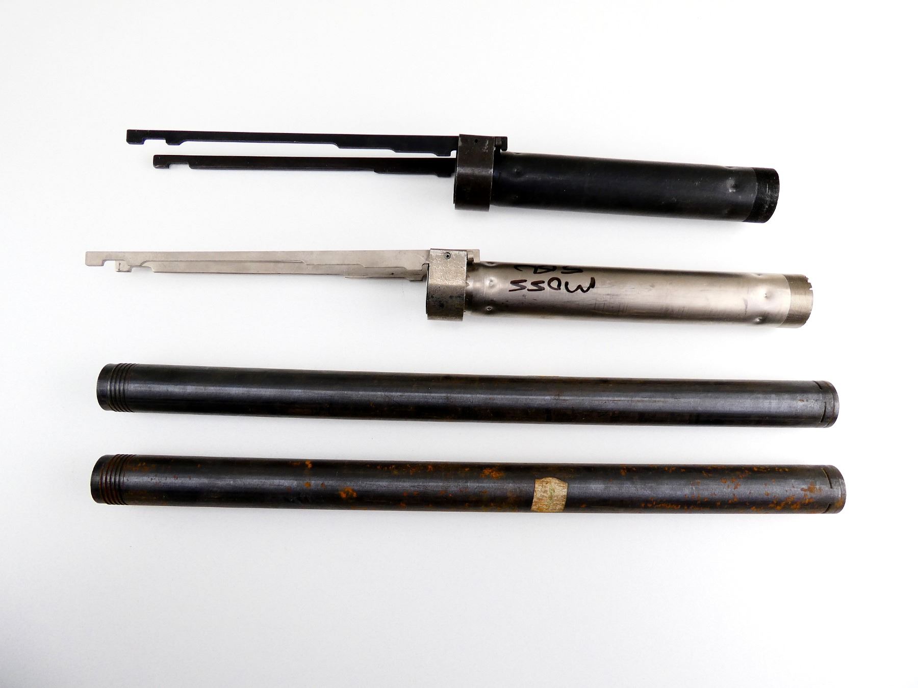 LOT INCLUDES; (2) MAGAZINE TUBES, OAL APPROX. 14.5" & (2) FOREARM SLIDES, OAL APPROX. 13". MAY REQUIRE FITTING. SEE PHOTOS.