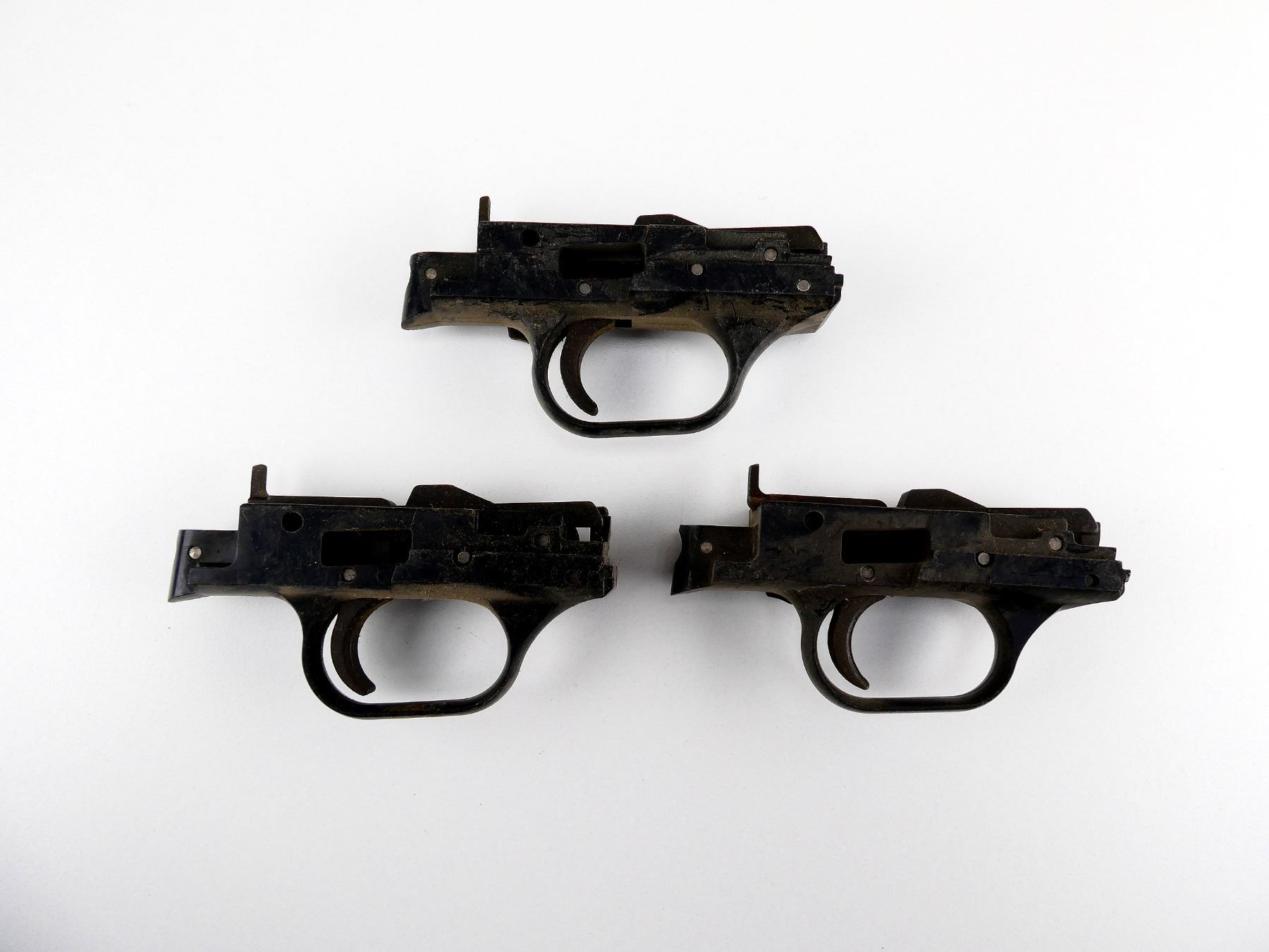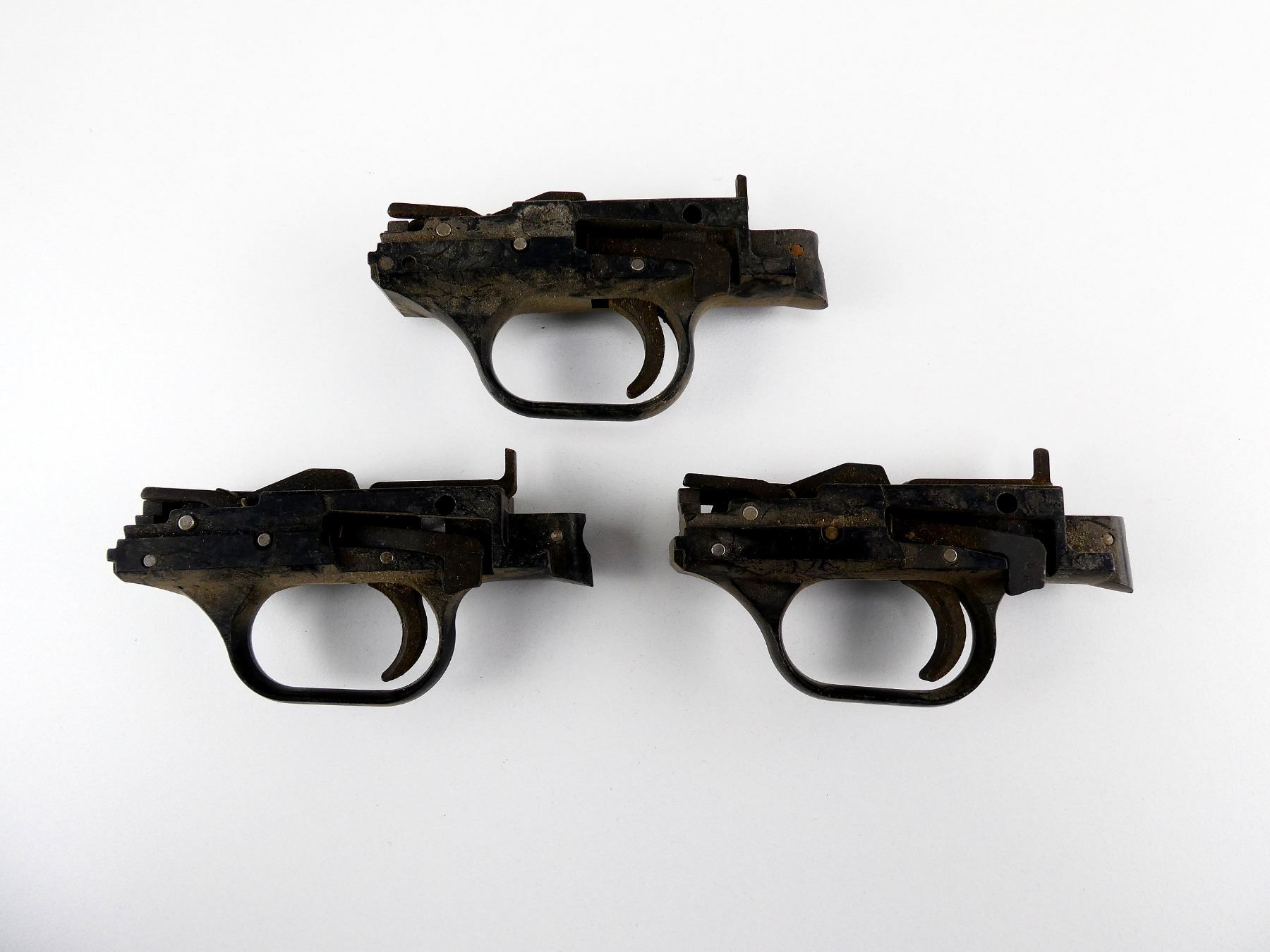 LOT INCLUDES; (3) TRIGGER MECH.'S, BLACK POLYMER, MAY BE MISSING COMPONENTS AND / OR CRACKED. MAY REQUIRE FITTING. SEE PHOTOS/