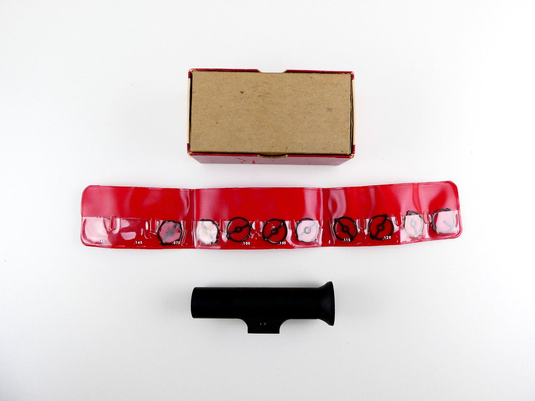 (1) GLOBE TARGET FRONT SIGHT, BLACK STEEL, WITH INTERCHANGEABLE INSERTS, PART #: 718003, NOS IN ORIGINAL PACKAGING. MAY REQUIRE FITTING. SEE PHOTOS.