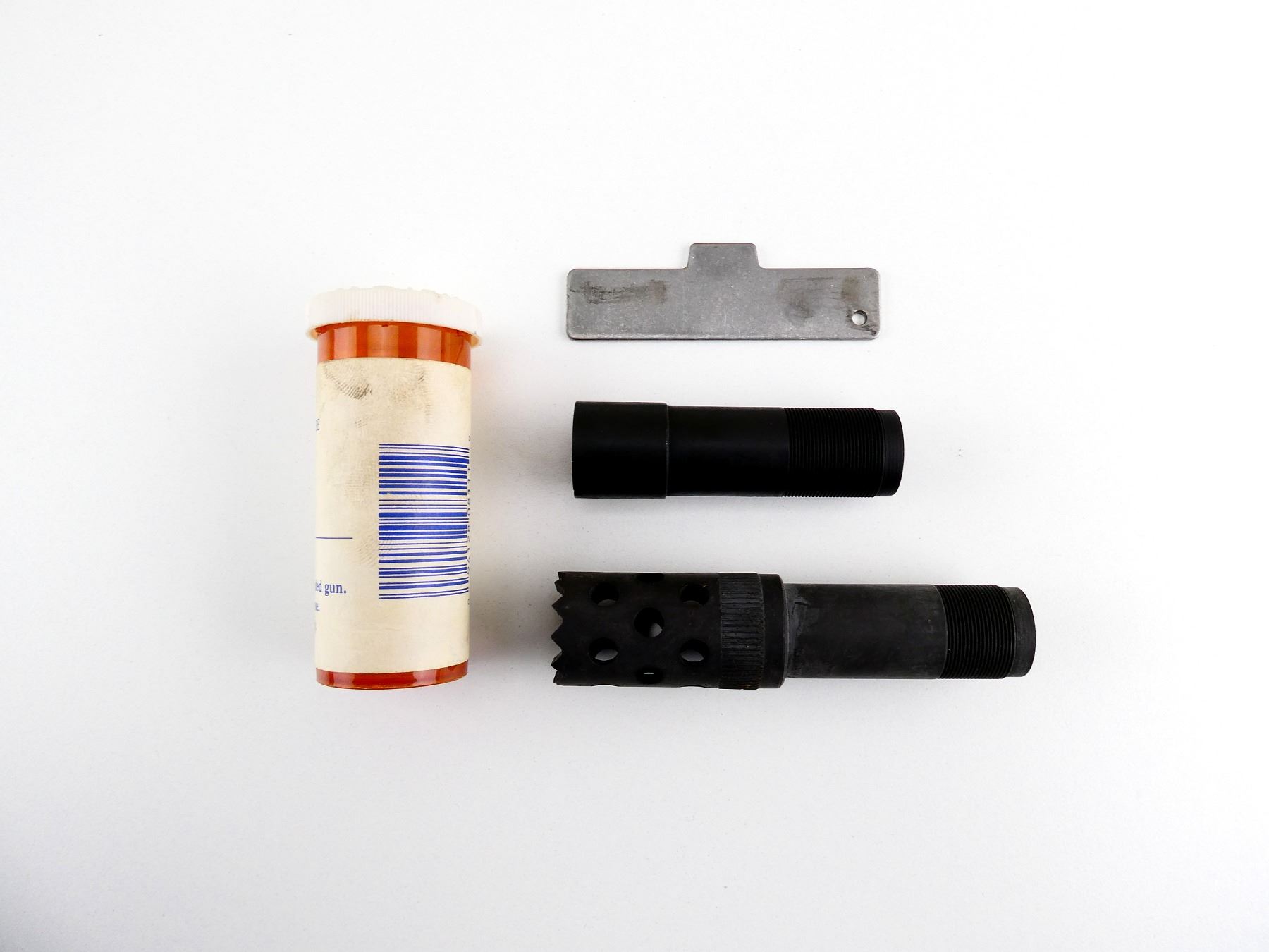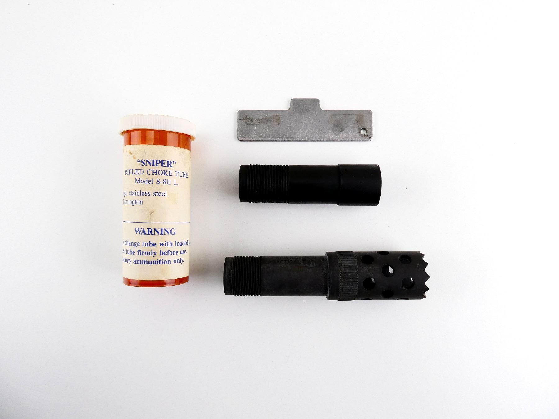 LOT INCLUDES; (1) PARKERIZED STEEL EXTENDED DOOR BREACHER, PART #: 2048 & (1) SNIPER RIFLED CHOKE, MODEL S-811 L, EXTENDED, BLUED STEEL. MAY REQUIRE FITTING. SEE PHOTOS.