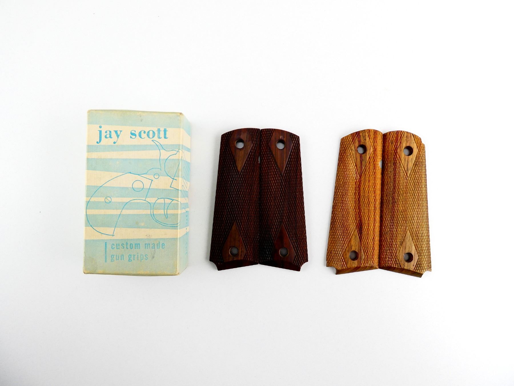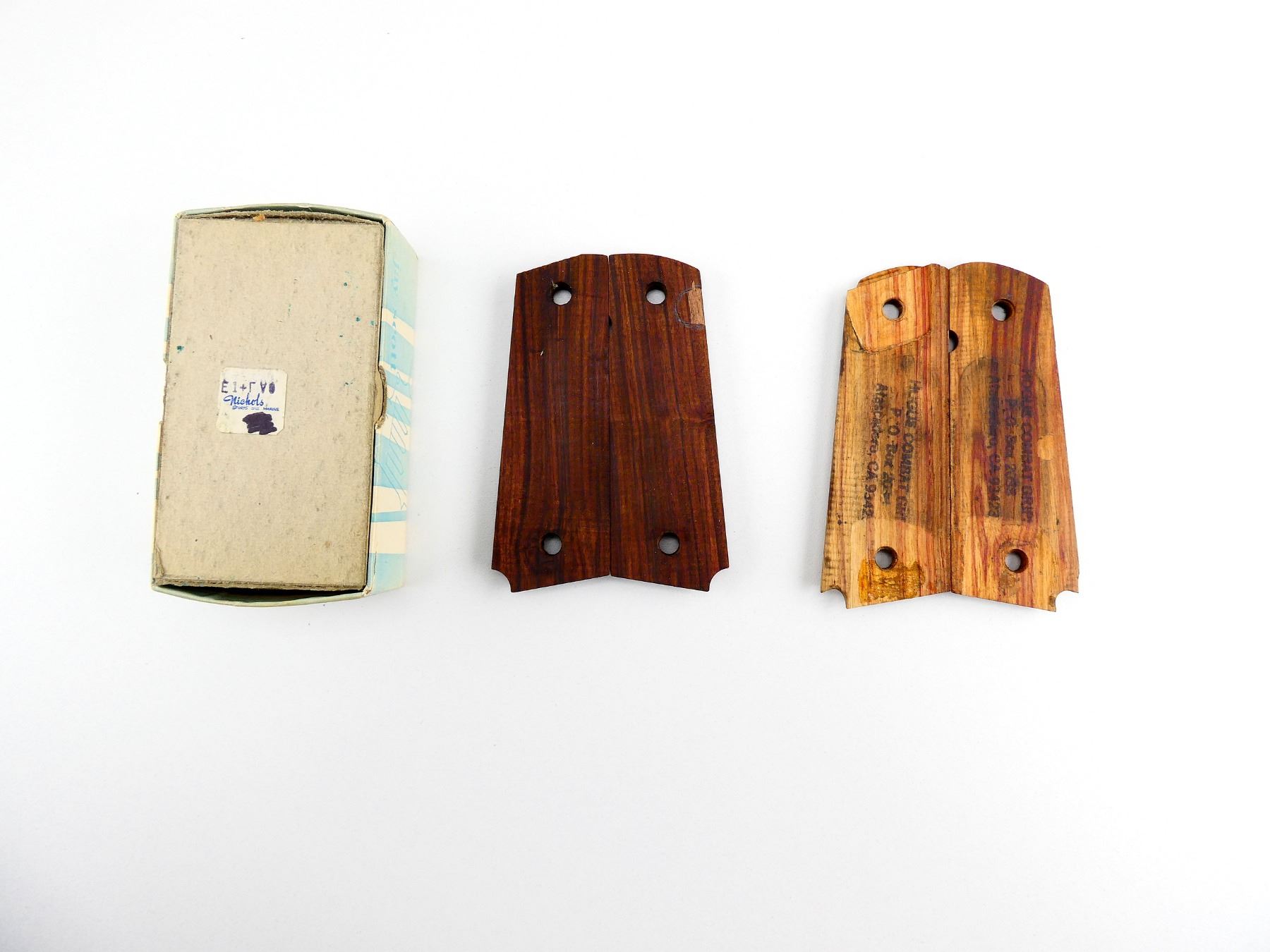 LOT INCLUDES; (2) SETS OF 1911 WOOD CHECKERED GRIPS , NO SCREW(S). MAY REQUIRE FITTING. SEE PHOTOS.