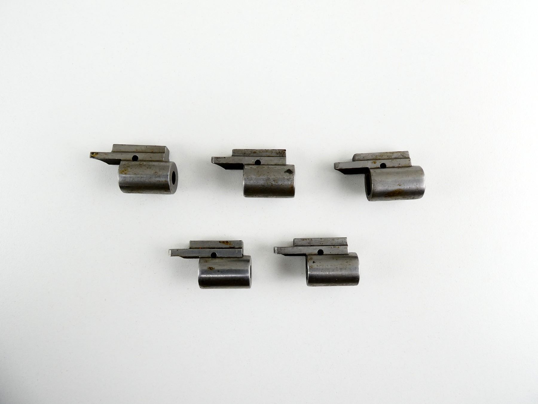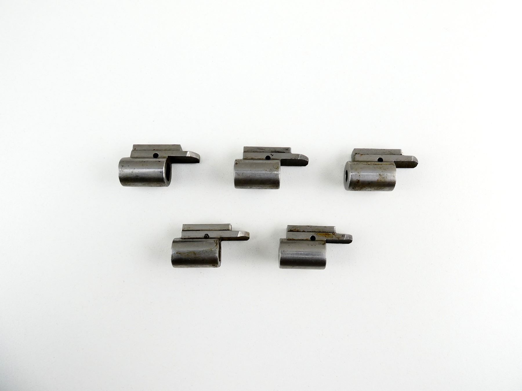 LOT INCLUDES; (5) M98 MAUSER FLAT BOTTOM COCKING PIECES, STEEL, USED TO ACCOMMODATE ADJUSTABLE TIMNEY TRIGGERS, UNMARKED. MAY REQUIRE FITTING. SEE PHOTOS.