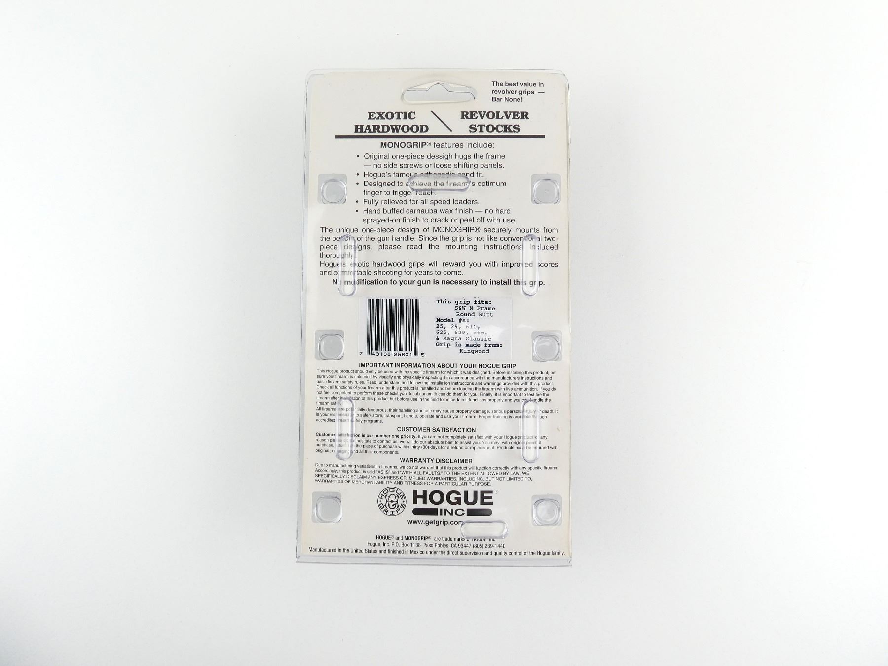 (1) S&W N-FRAME 1-PIECE WOOD CHECKERED GRIPS, PART #: 25601, APPEARS NOS IN ORIGINAL PACKAGING. MAY REQUIRE FITTING. SEE PHOTOS.