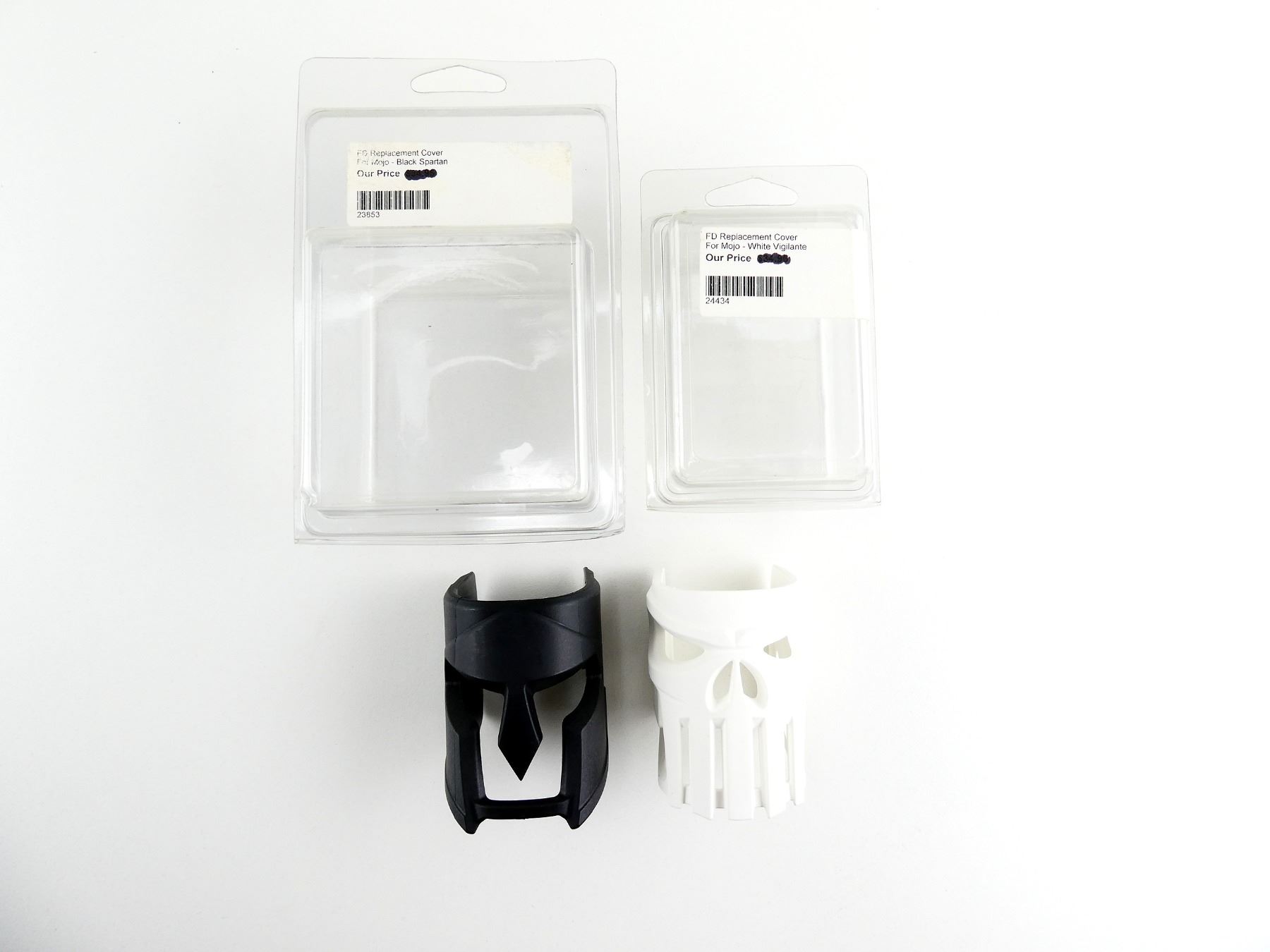 LOT INCLUDES; (1) BLACK SPARTAN FD REPLACEMENT COVER FOR MOJO & (1) WHITE VIGILANTE FD REPLACEMENT COVER FOR MOJO, CONSIGNOR STATES: "BOTH NOS". MAY REQUIRE FITTING. SEE PHOTOS.
