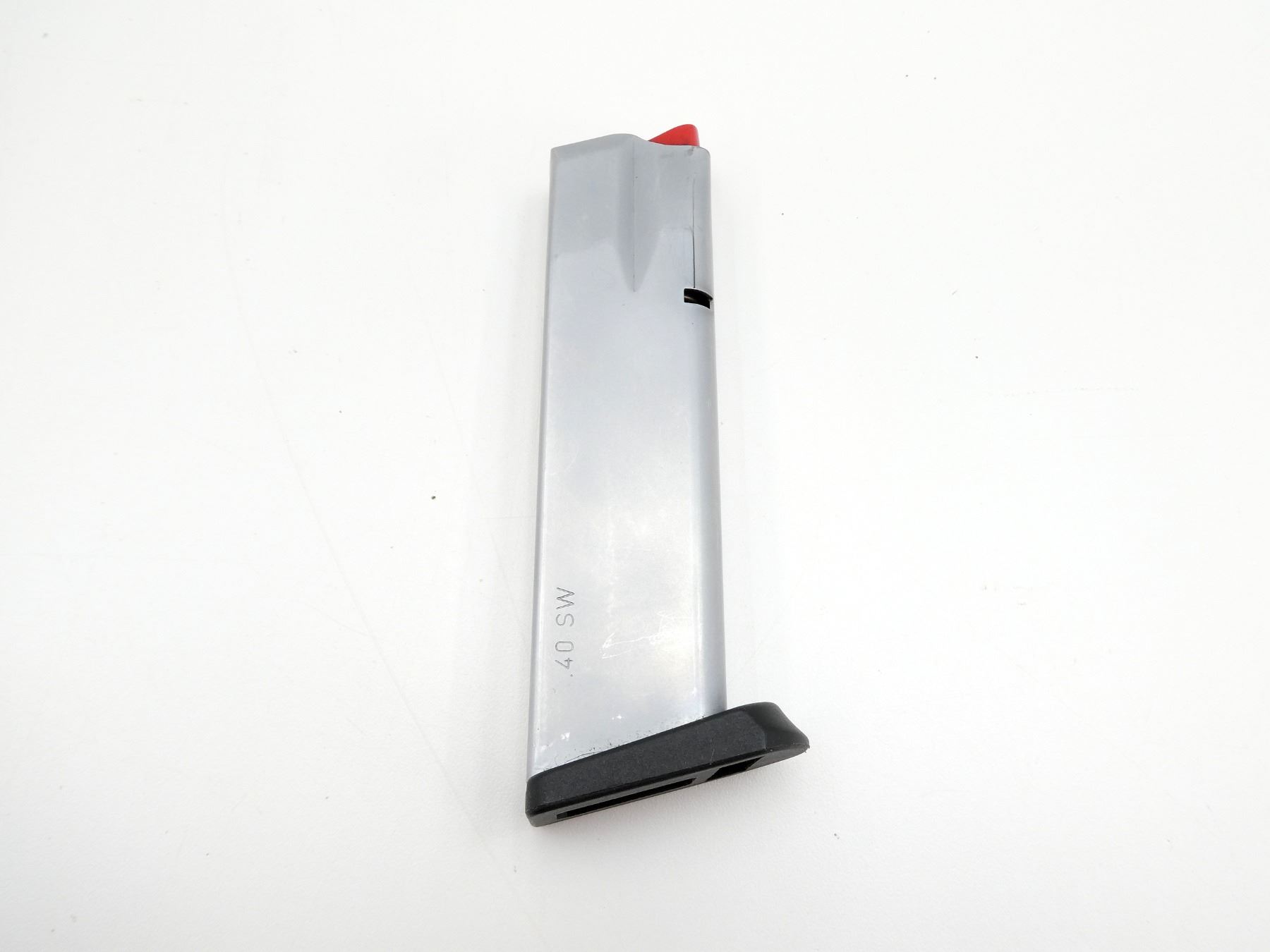 (1) .40 S&W MAG, 10 RNDS, STAINLESS STEEL WITH RED POLYMER FOLLOWER, MARKED: ".40 SW". SEE PHOTOS. PAL REQUIRED.