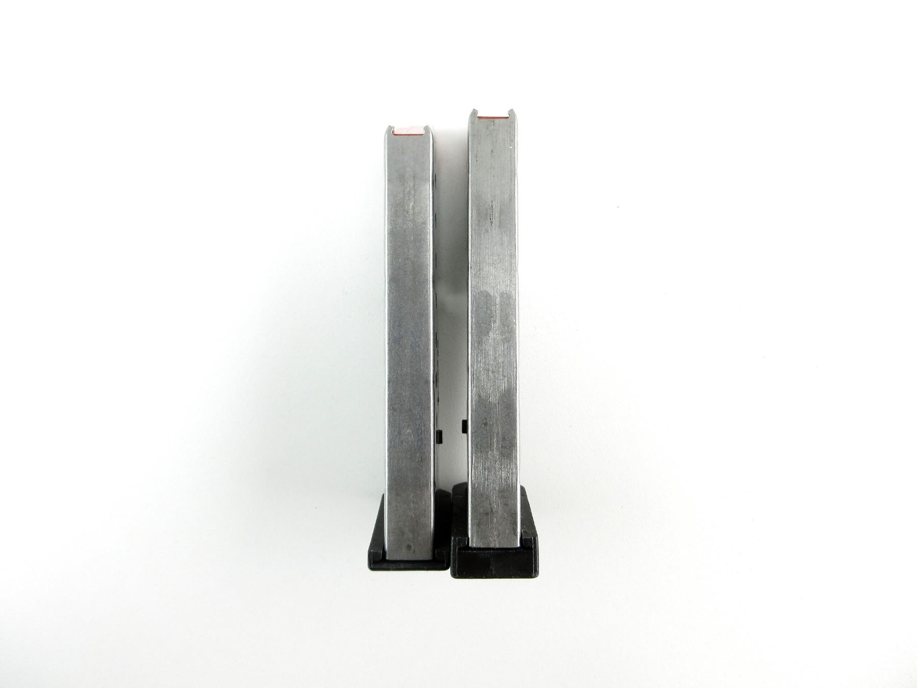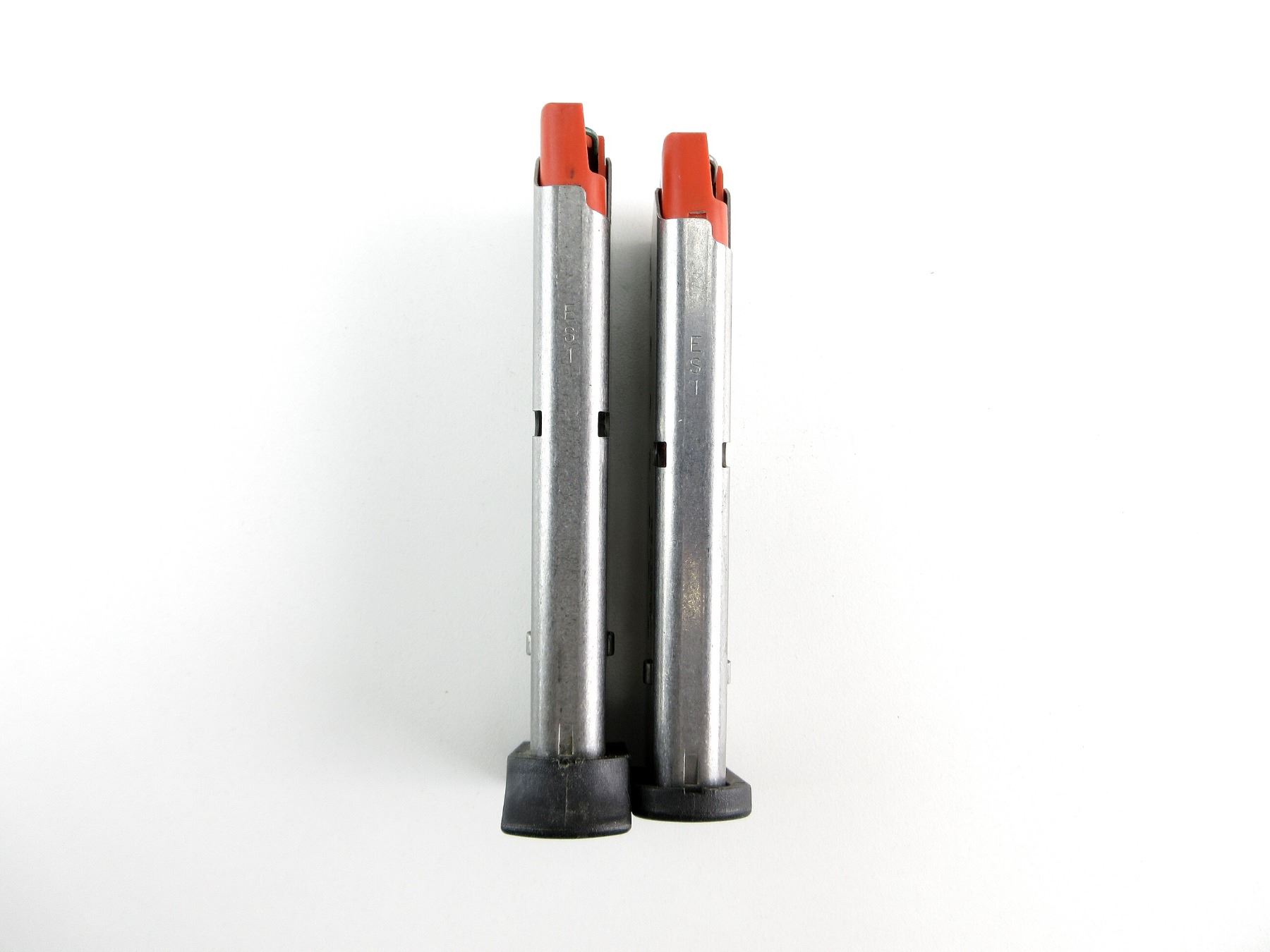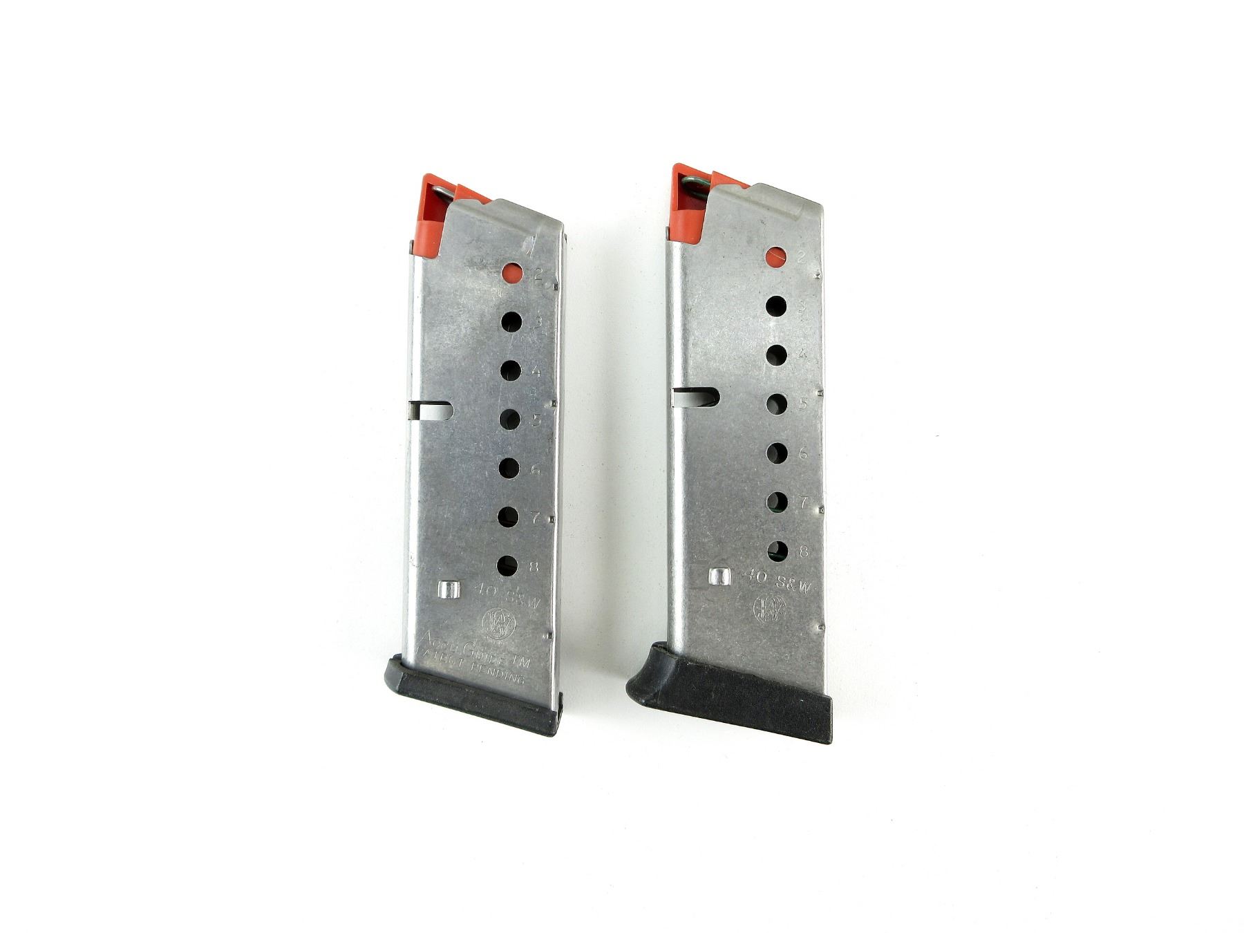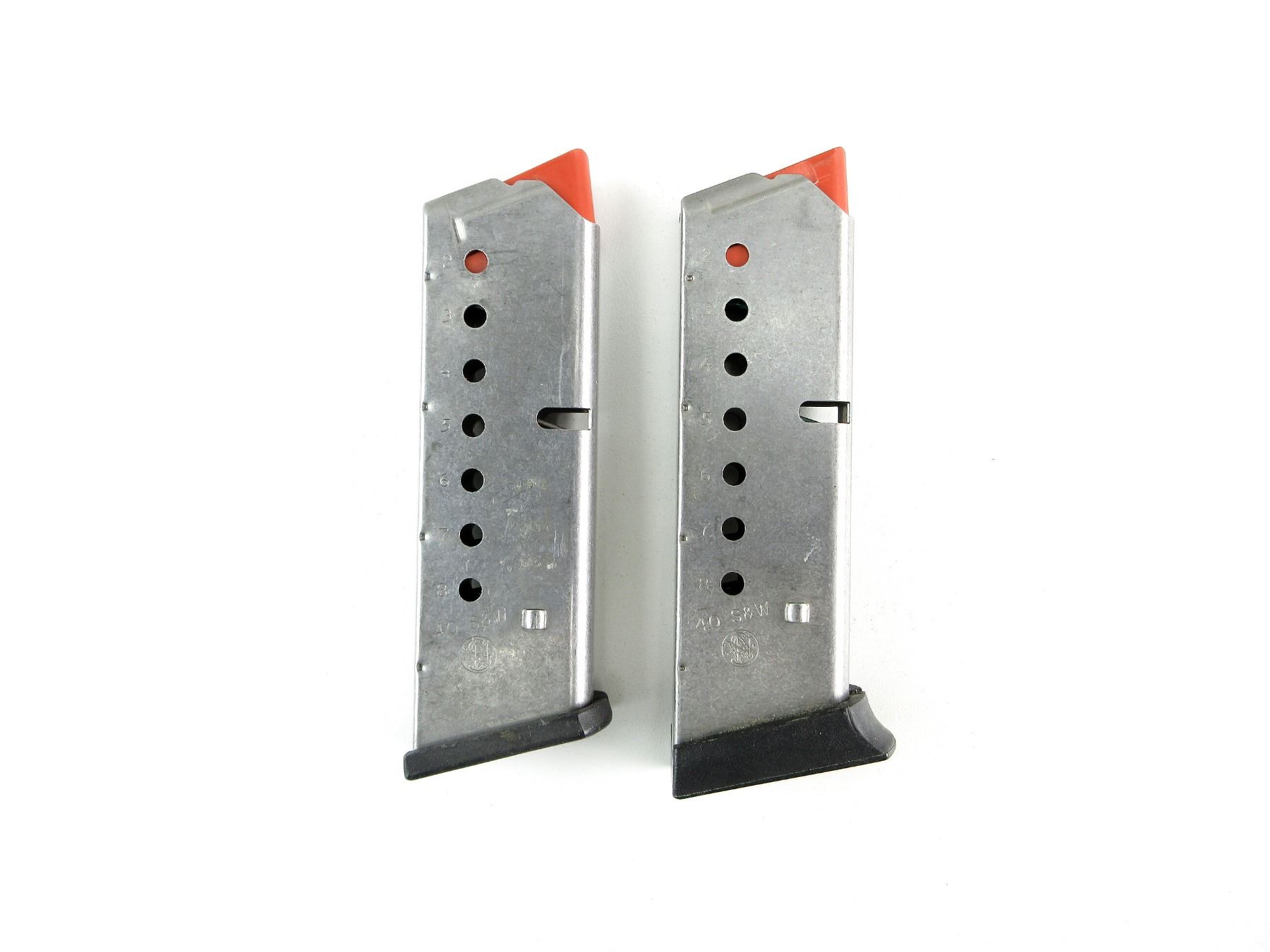 LOT INCLUDES; (2) .40 S&W MAGS, 8 RNDS, STAINLESS STEEL CONSTRUCTION, RED POLYMER FOLLOWER, MARKED: "40 S&W", ETC., BLACK POLYMER BASE. SEE PHOTOS. PAL REQUIRED.