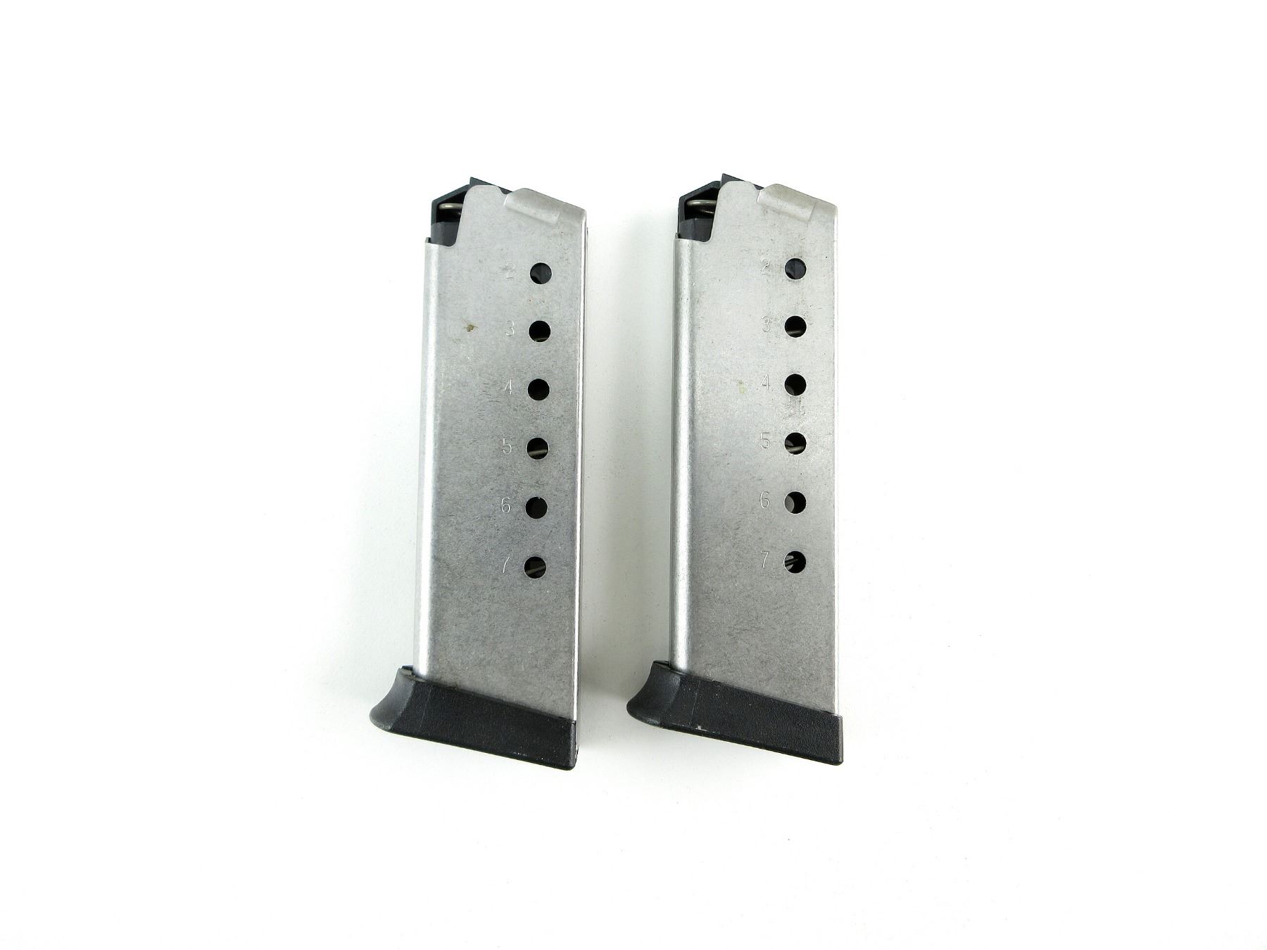 LOT INCLUDES; (2) FITS ASSORTED MODELS, .45 ACP MAGS, 7 RNDS, STAINLESS STEEL CONSTRUCTION, BLACK POLYMER FOLLOWER, MARKED: "45 CAL", ETC., BLACK POLYMER BASE. SEE PHOTOS. PAL REQUIRED.