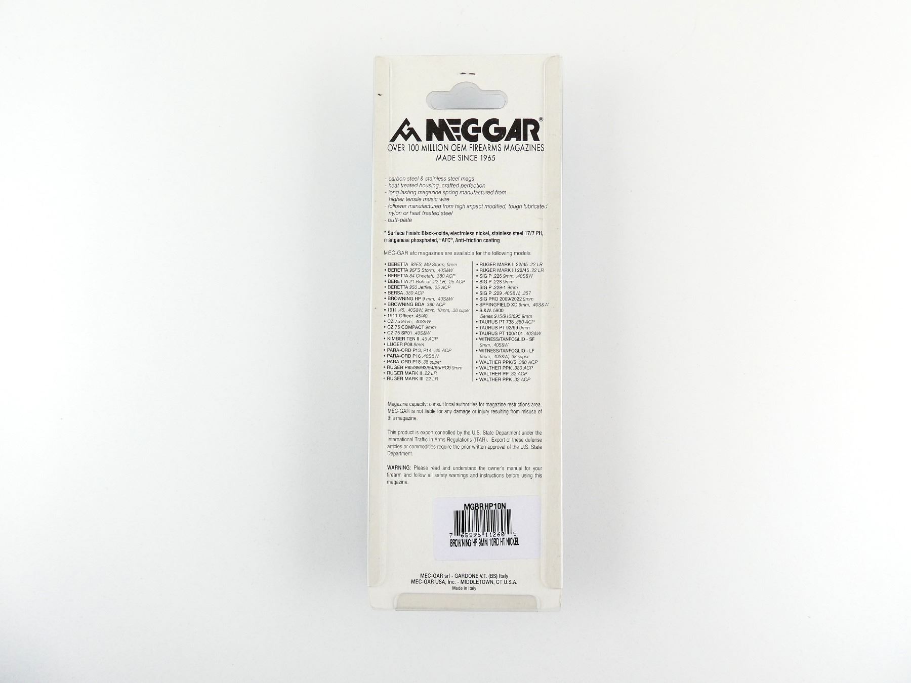 (1) 9MM MAG, 10 RNDS, METAL & POLYMER CONSTRUCTION, MARKED: "MEC-GAR", "MG-BRHP-9MM", ETC., NOS IN SEALED PACKAGING. SEE PHOTOS. PAL REQUIRED.