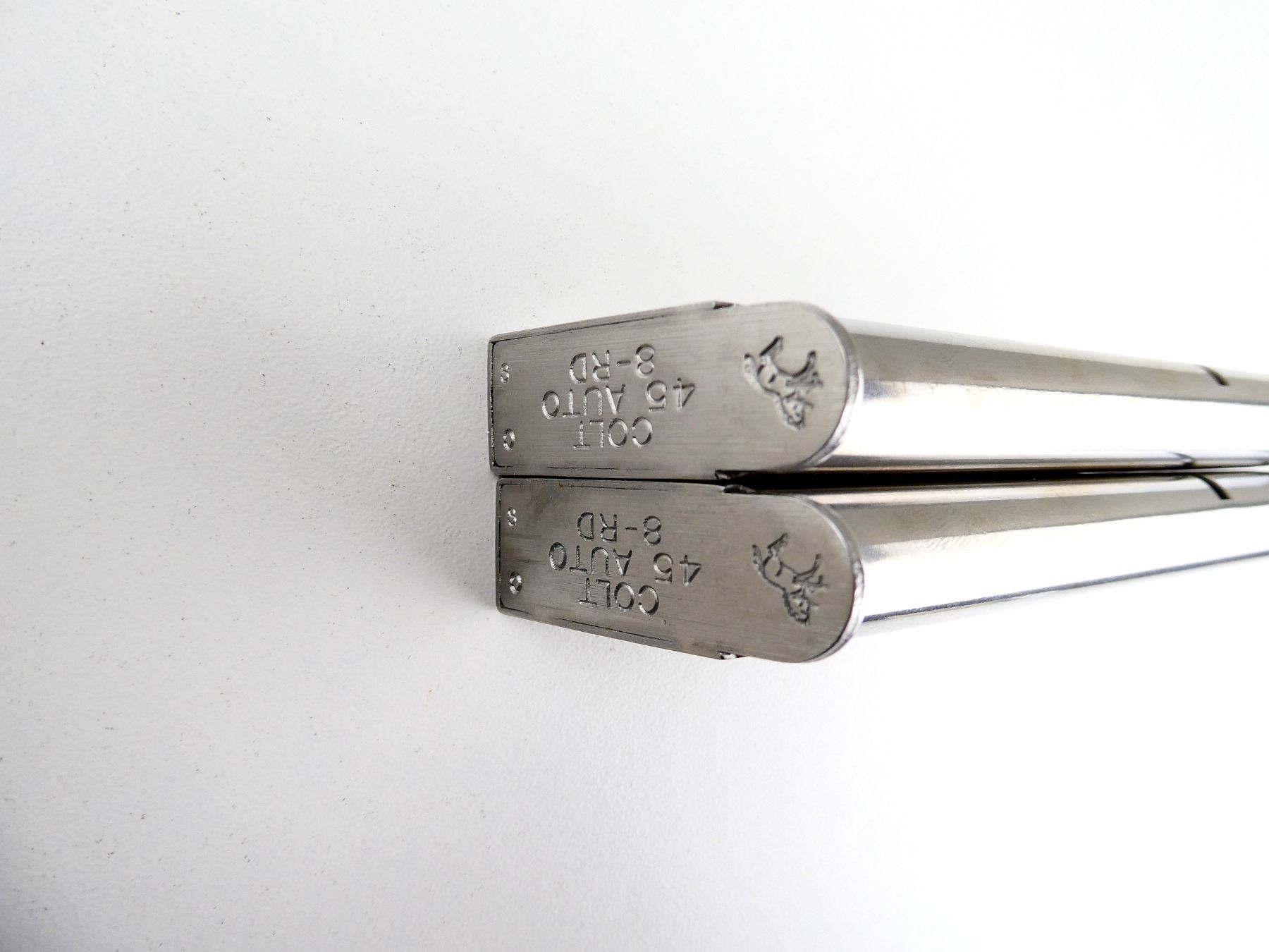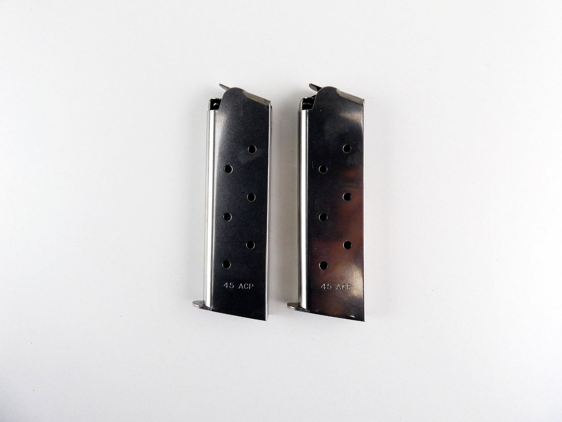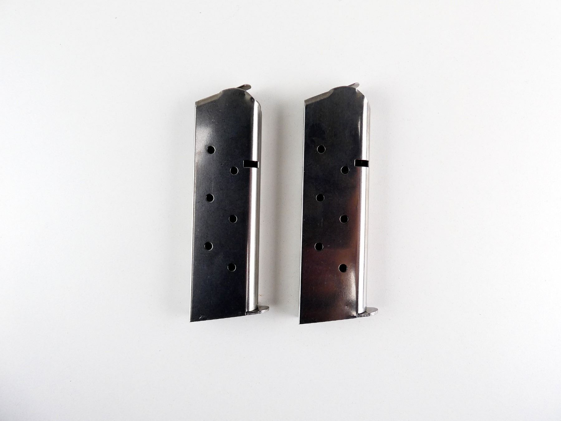 LOT INCLUDES; (2) 1911 .45 ACP MAGS, 8 RNDS, STAINLESS STEEL CONSTRUCTION, BASE MARKED: "COLT, 45 AUTO, 8-RND". SEE PHOTOS. PAL REQUIRED.