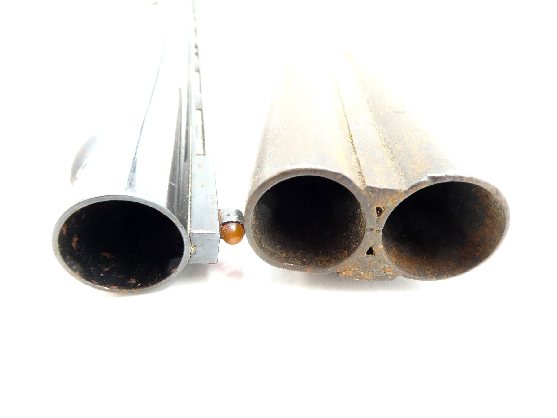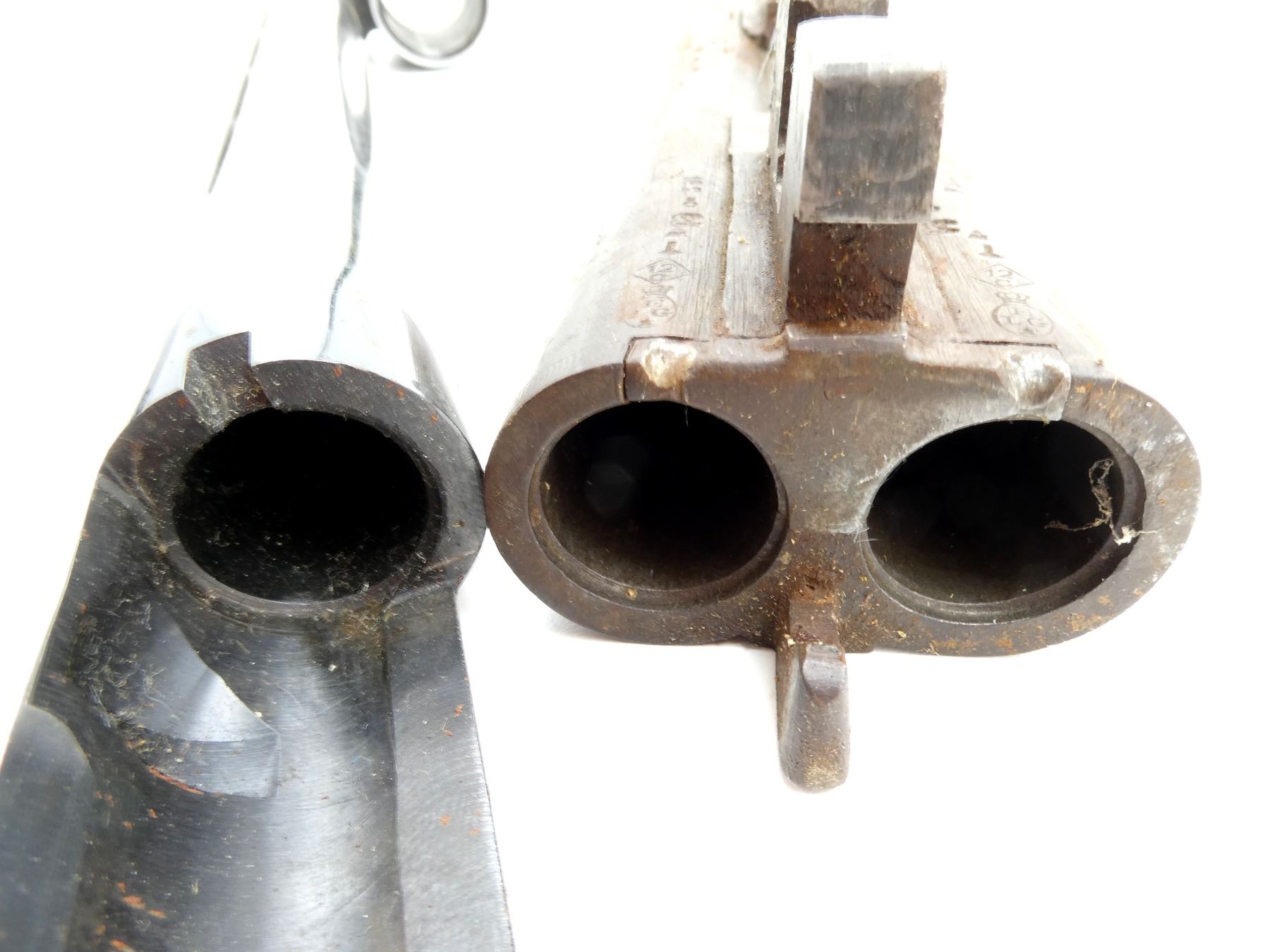 LOT INCLUDES; (1) SXB BARREL, BLUED STEEL CONSTRUCTION, 12 GAUGE 2 3/4", BORE IS POOR / BULGED, VARIOUS MARKINGS, WITH FRONT SIGHT & VENT RIB, OAL APPROX. 26" & (1) UNKNOWN BELGIAN SXS, 12 GAUGE 2 3/4", WITH FIXED FULL & MOD. CHOKE, BORE IS POOR / RUSTY / PITTED, VARIOUS PROOF MARKS, OAL APPROX. 30". MAY REQUIRE FITTING. SEE PHOTOS.