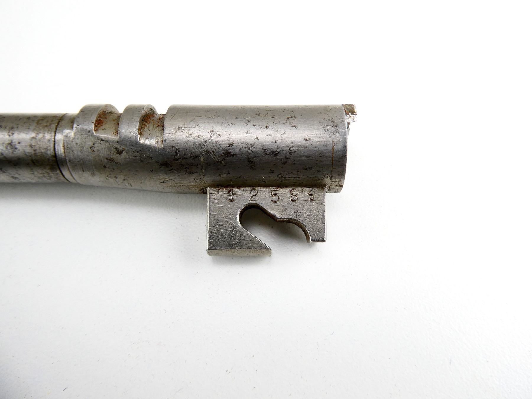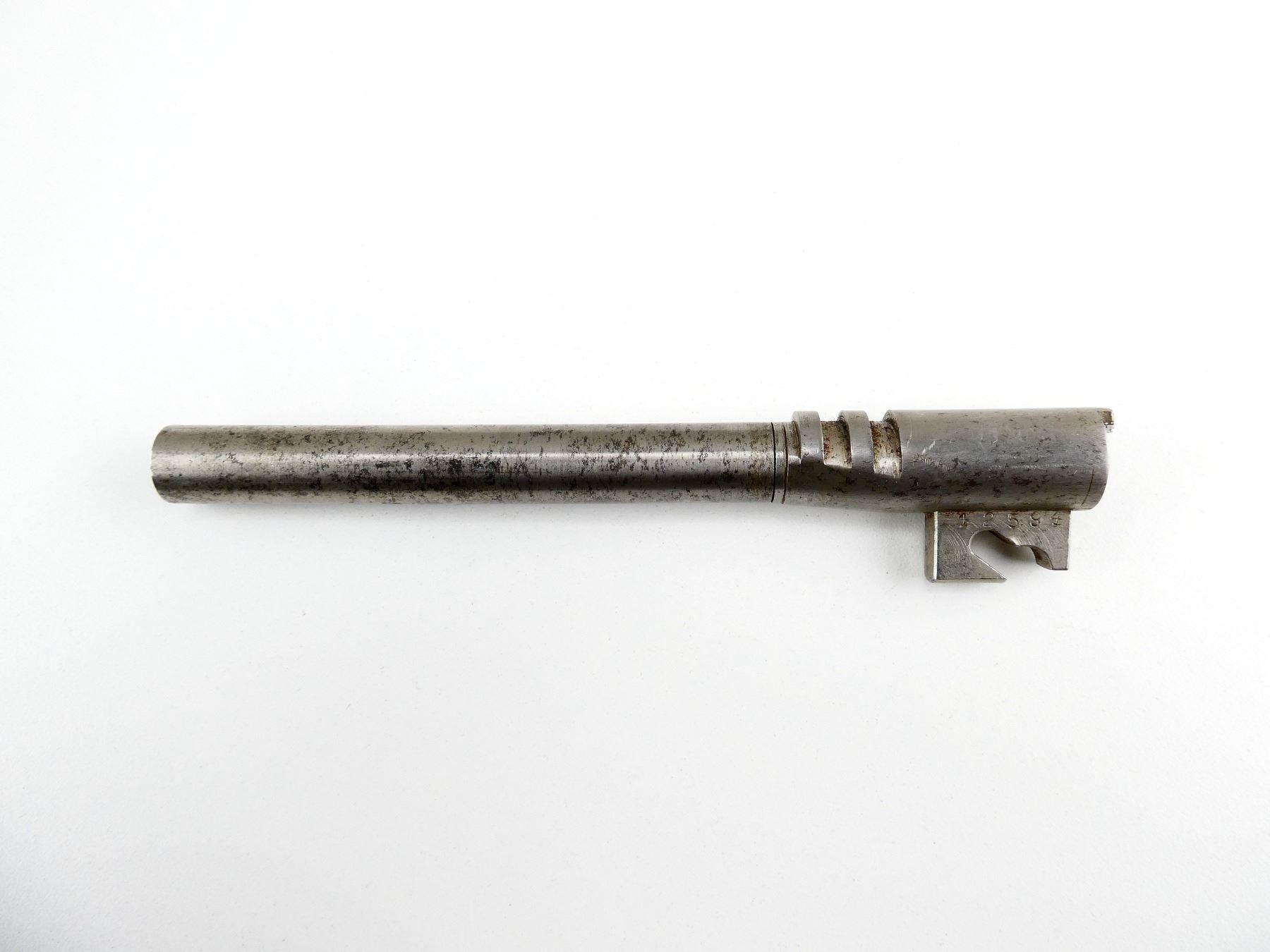(1) BARREL, IN THE WHITE STEEL CONSTRUCTION, 9MM, BORE IS GOOD, MARKED: "12584", OAL APPROX. 6". MAY REQUIRE FITTING. SEE PHOTOS. PAL REQUIRED.