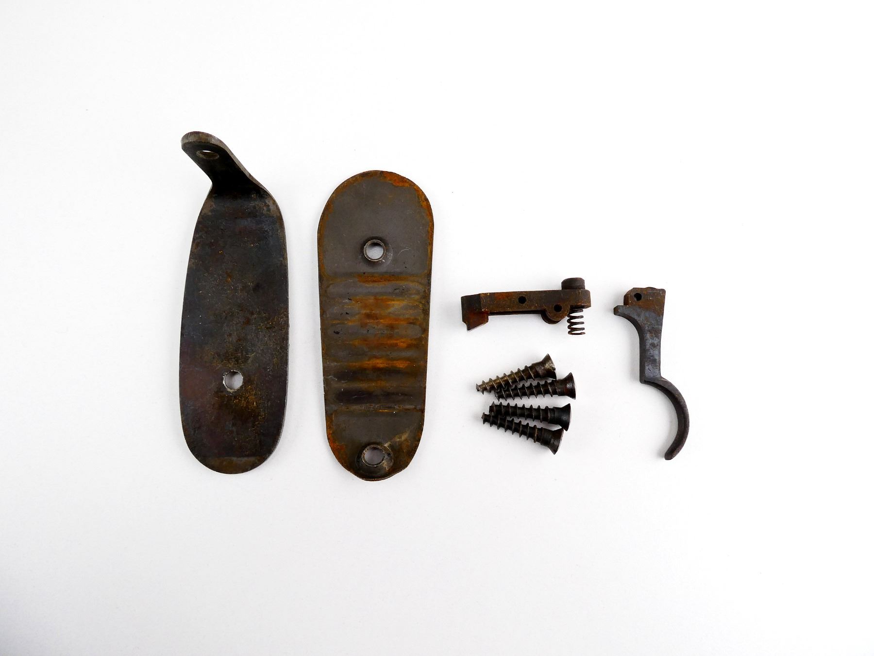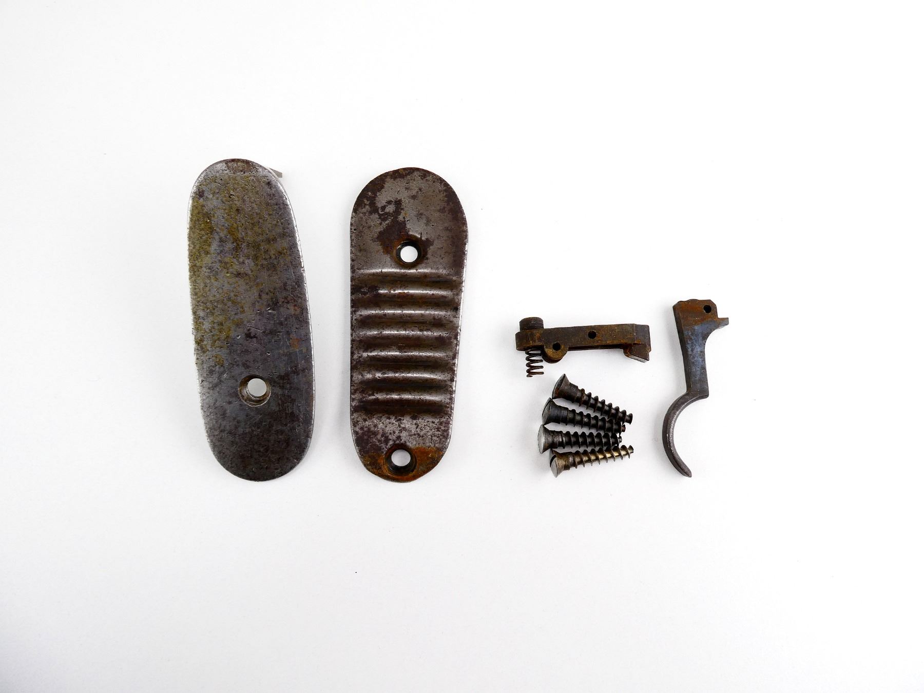 LOT INCLUDES; SWEDISH M96 BUTT PLATE WITH TWO SCREWS, MARKED: "714" & 98 MAUSER GROOVED BUTT PLATE WITH SCREWS, TRIGGER & SEAR. MAY REQUIRE FITTING. SEE PHOTOS.
