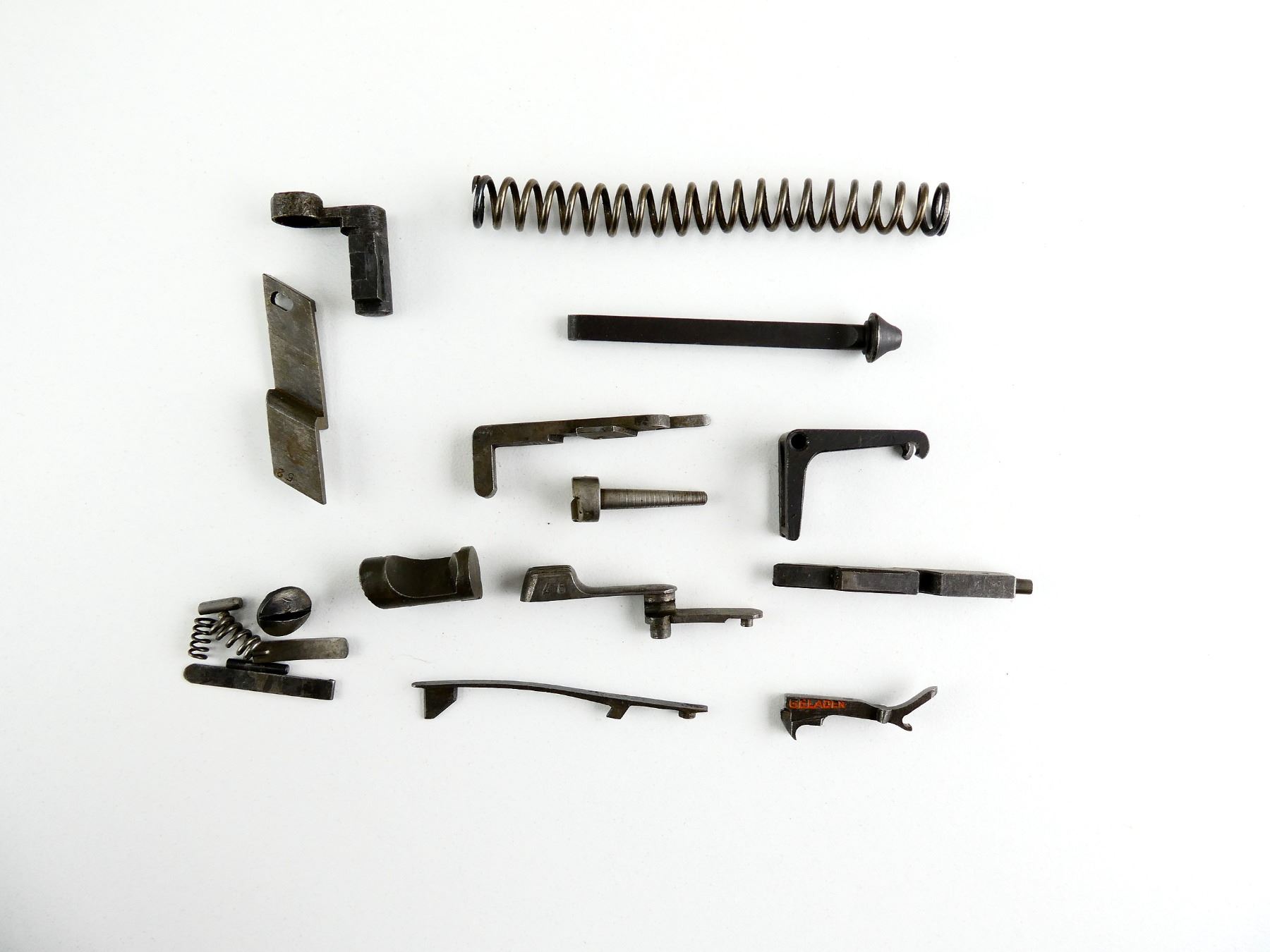 LOT INCLUDES; EXTRACTOR, SEAR, HOLDOPEN, TAKE-DOWN LEVER, MAG CATCH, SAFETY, VARIOUS SPRINGS / SCREWS, ETC. MAY REQUIRE FITTING. SEE PHOTOS.