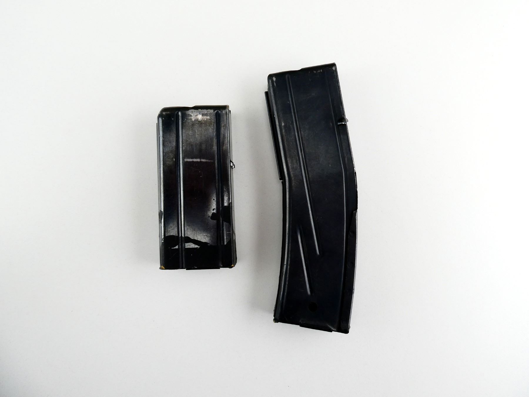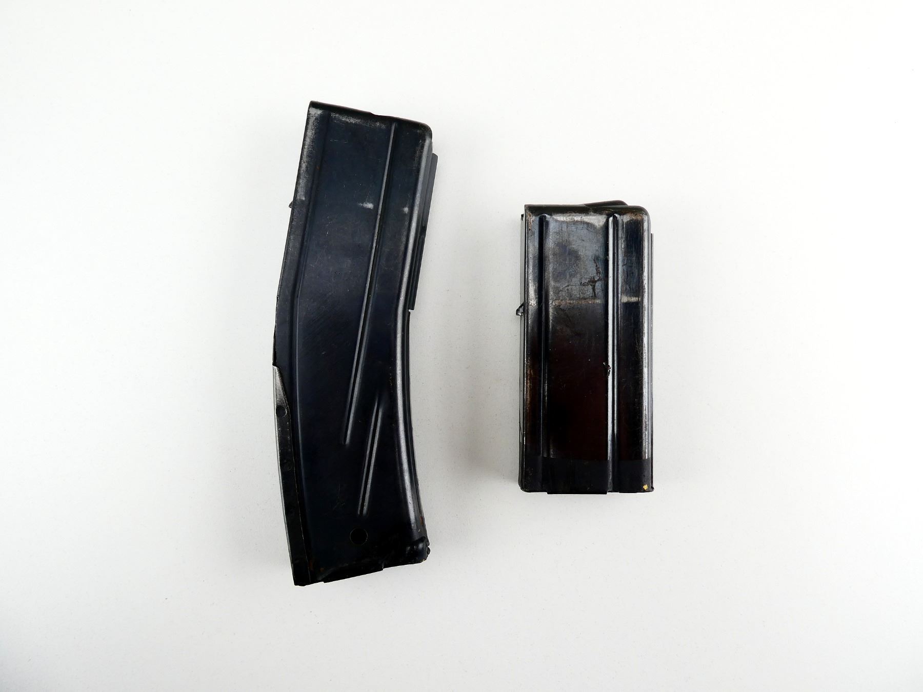 LOT INCLUDES; (2) .30 M1, 5/15 & 5/30 ROUND PINNED MAGS, BLUED STEEL, ONE MARKED: "I.I.", ONE MARKED: "J". SEE PHOTOS. PAL REQUIRED.