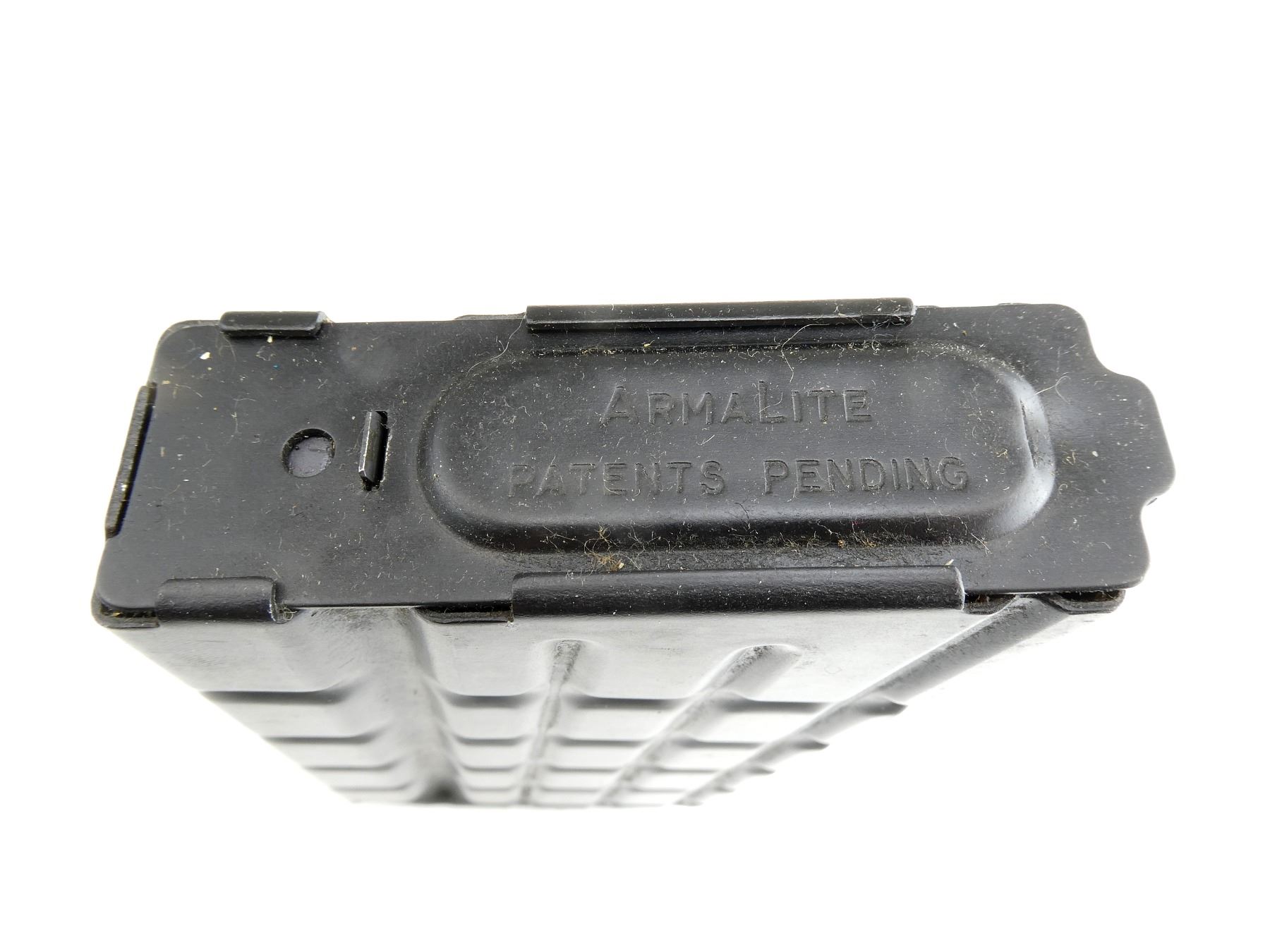 (1) 7.62N MAG, 5/20 ROUND PINNED MAG, ALUMINUM BODY & FOLLOWER WITH STEEL COMPONENTS, BASE MARKED: "ARMALITE PATENTS PENDING". SEE PHOTOS. PAL REQUIRED.