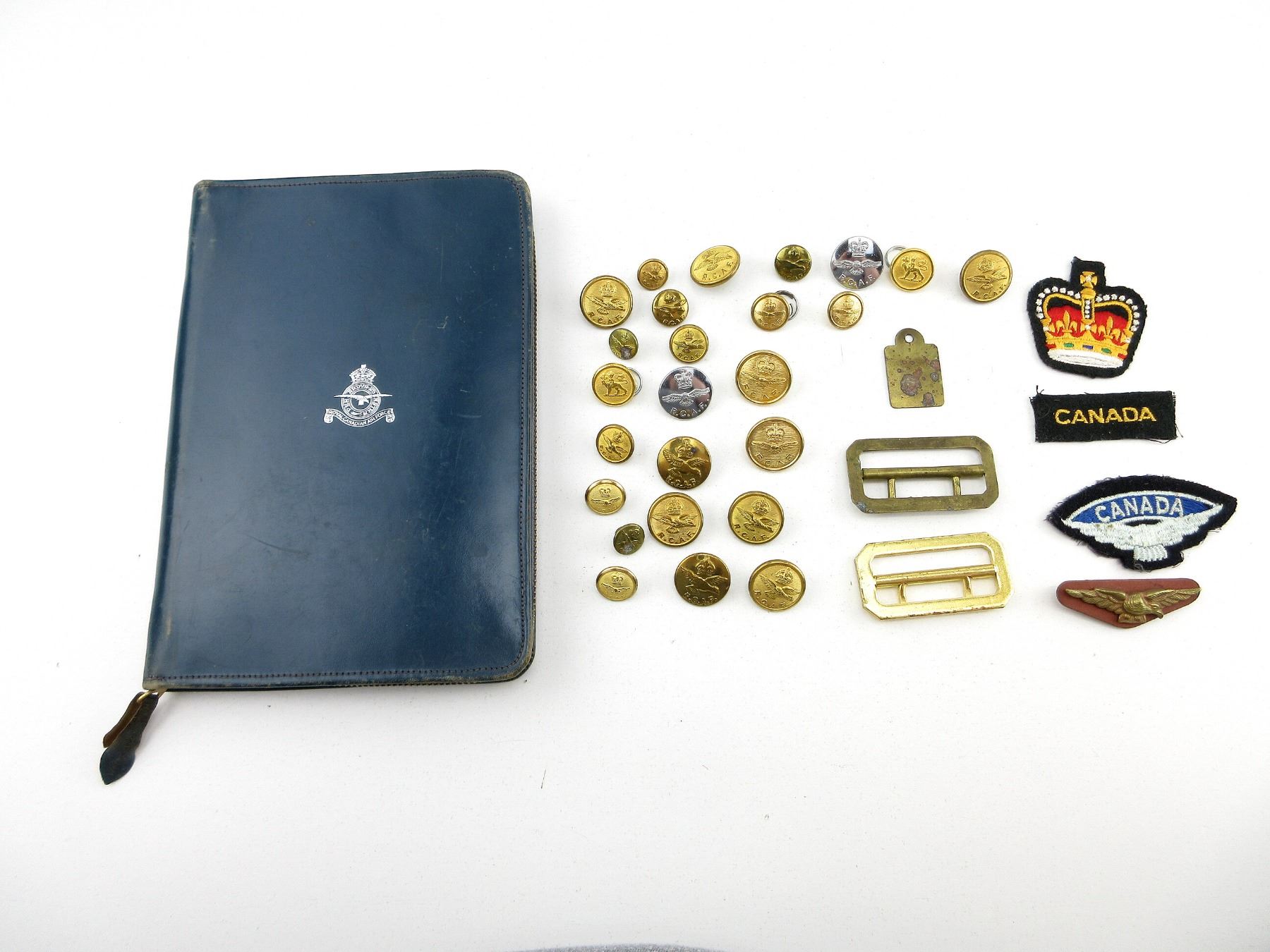 Lot 24031 ASSORTED WWII / MODERN RCAF BUTTONS, BADGES, NOTE CASE, ETC. LOT