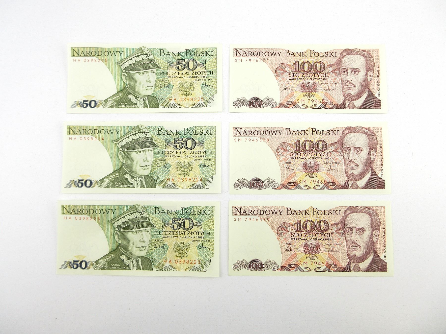 LOT INCLUDES; (3) 100 ZLOTY BANK NOTES & (3) 50 ZLOTY BANK NOTES. SEE PHOTOS.