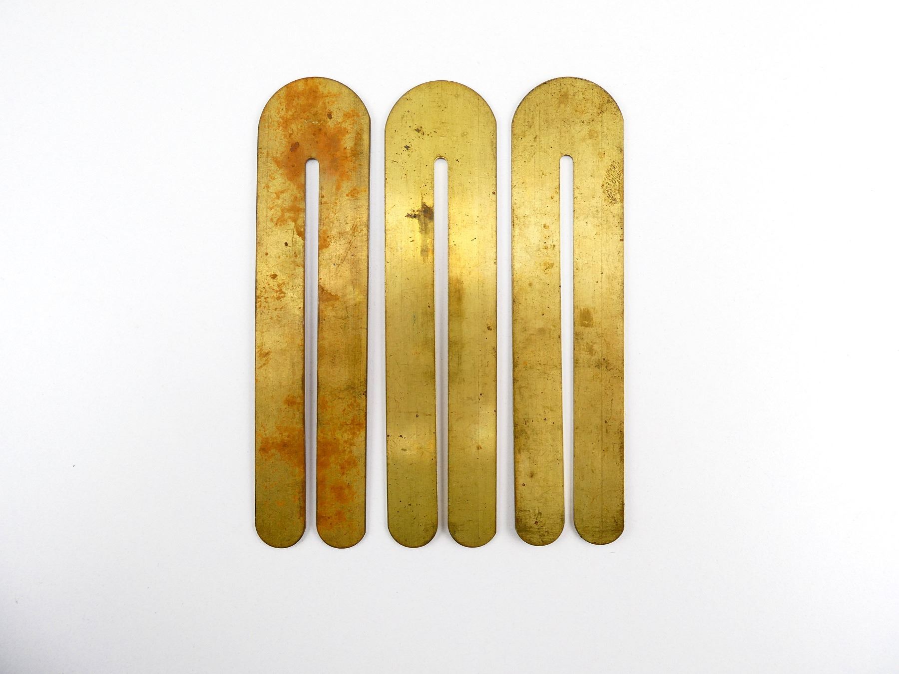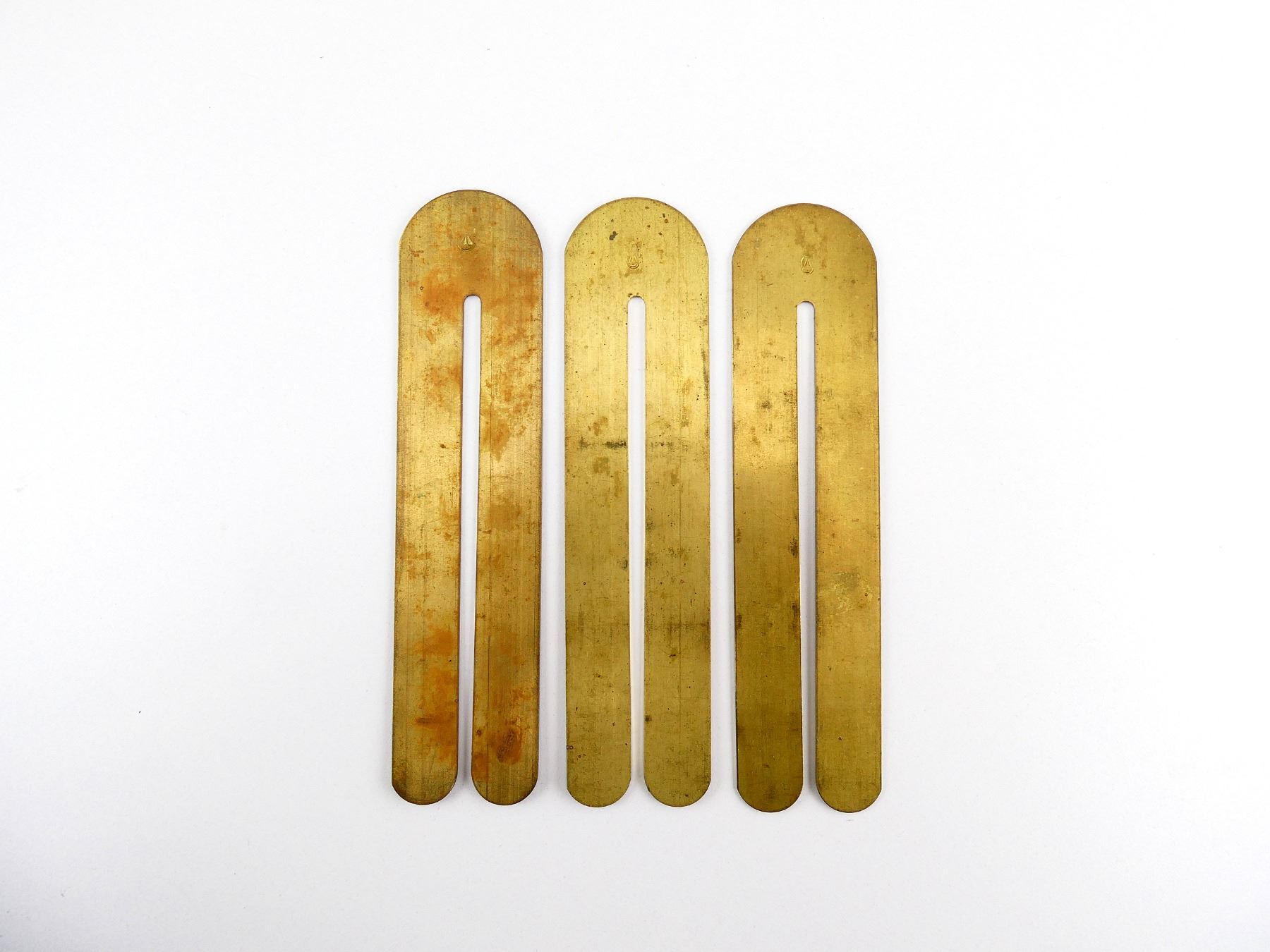 LOT INCLUDES; (3) BRASS BUTTON STICKS, ALL MARKED WITH EARLY VERSION C-BROAD ARROWS, OALS APPROX. 6 5/8". SEE PHOTOS.
