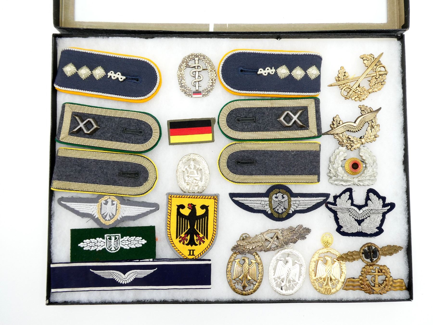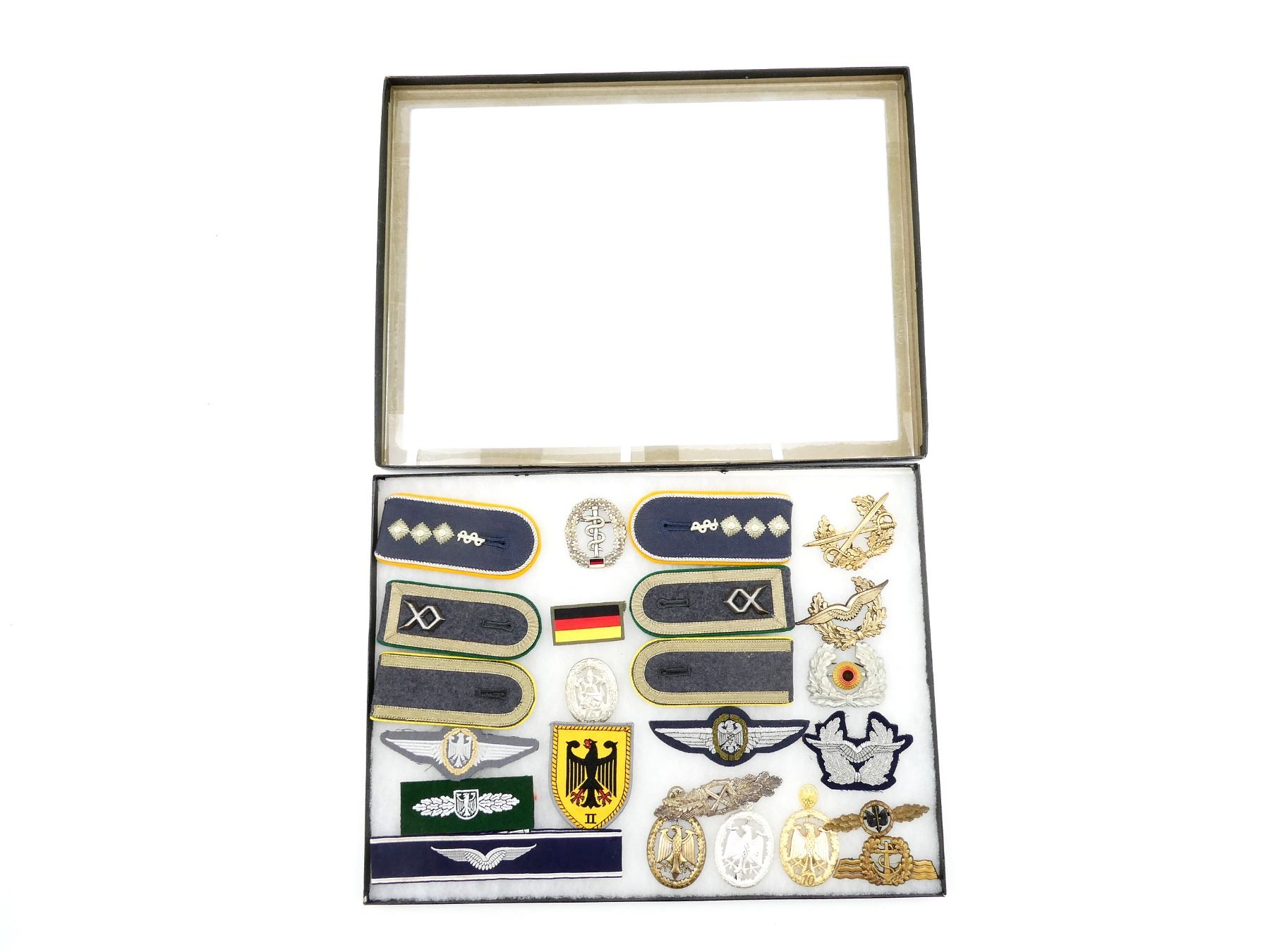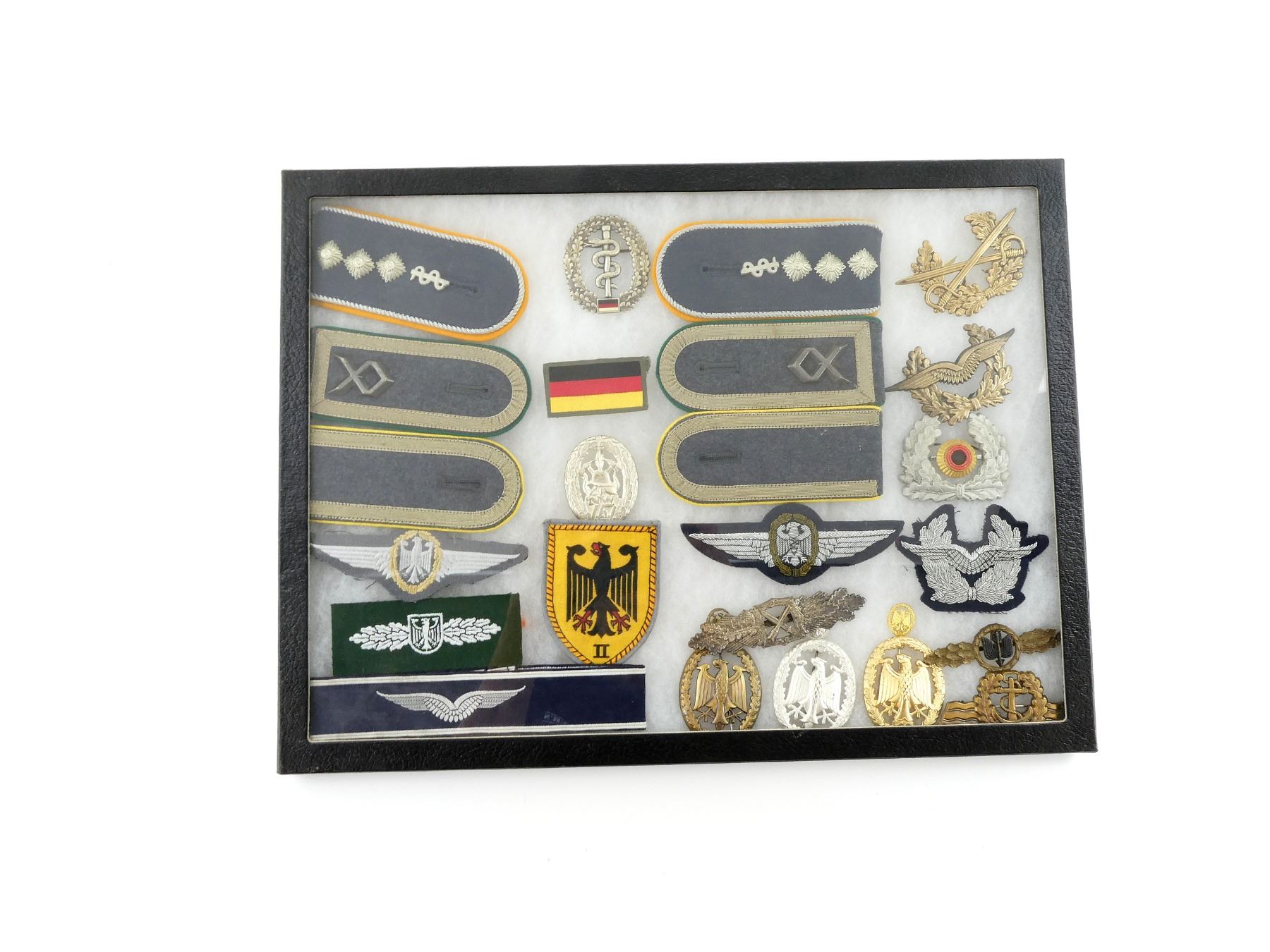 Lot 24056 POST-WWII GERMAN BUNDESWEHR SHOULDER BOARDS, BADGES, ETC. IN DISPLAY CASE LOT