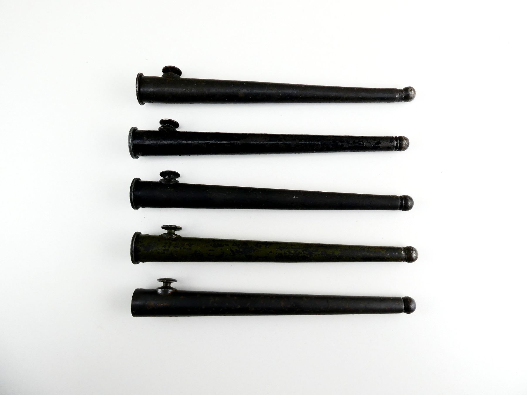 LOT INCLUDES; (5) FITS NO.4 MKII & NO.4 MKII* SPIKE BAYONETS, BLACK PAINTED STEEL NO.4 MKI SPIKE BAYONET SCABBARDS (NO BAYONETS), TWO HAVE NO VISIBLE MARKINGS, ONE UN-MARKED SCABBARD THROAT IS MISSING, OTHER UN-MARKED SCABBARD BALL TIP IS LOOSE, ONE WITH THROAT MARKED: "NO4 MKI, S.S.P. 1944" WITH BROAD ARROW, ONE MARKED: "NO 4 MKI, S.S.P. 1943" WITH BROAD ARROW, OTHER MARKED: "NO4 MKI, S.S.P. 1944" WITH BROAD ARROW, BALL TIP IS LOOSE, OALS APPROX. 8.25" & 8 3/8". SEE PHOTOS.